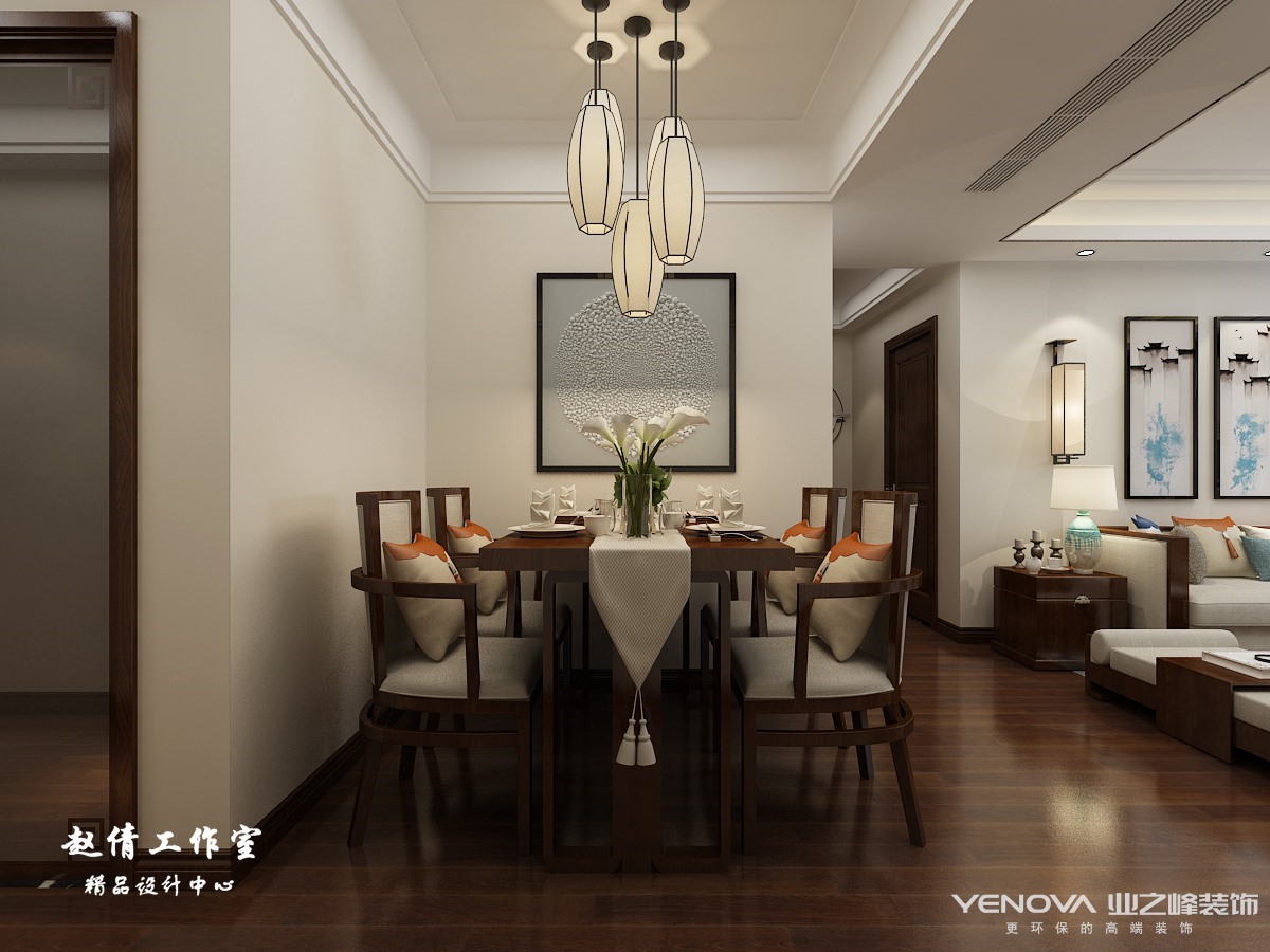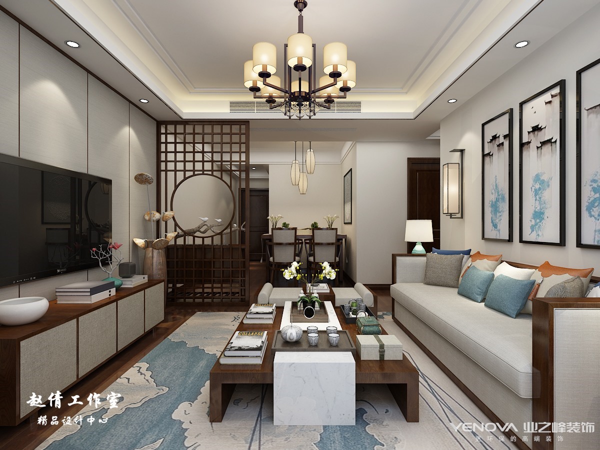 新中式风格非常讲究空间的层次感,似断非断,似隔非隔,屏风就像是一位含蓄的少女一样,让人忍不住轻挽面纱,细琢其容。