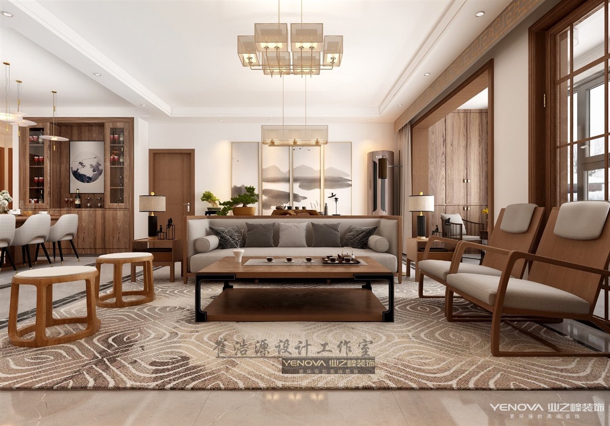 小区:绿地海珀天沅 面积:188㎡ 户型:四居 风格:新中式风格