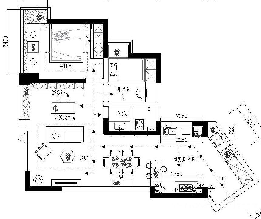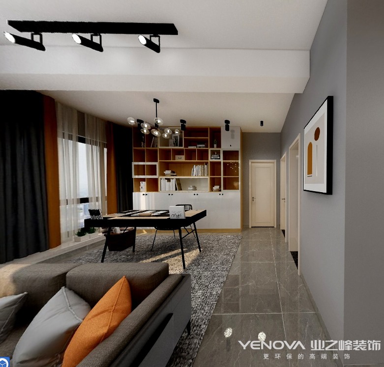 咨询电话:0791-86296016,本案例业主的房子是前期考虑自住,后期考打算出租,因此装修上并不想太复杂,已做现代风格为主,考虑业主自住需要,在客厅处开辟了一处作为开放式书房,方便办公,此案例把麻雀虽小五脏俱全体现的淋漓尽致。