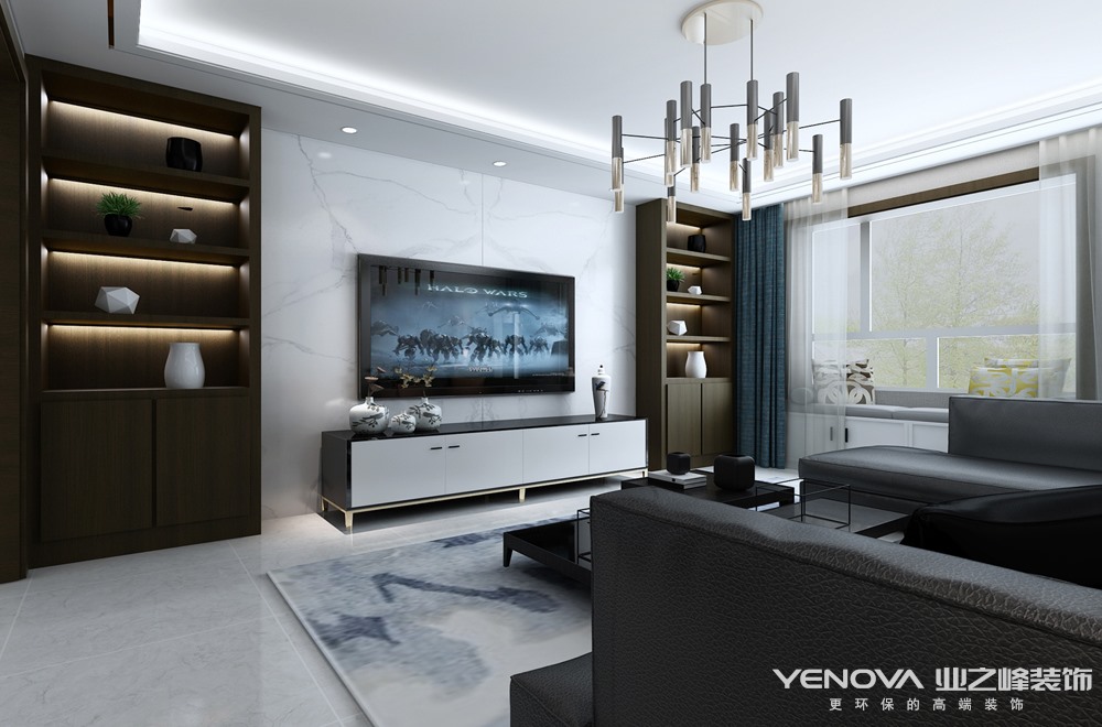 客厅以简约明快的色调,搭配灵活的建筑空间,营造轻松活跃的舒适空间,以浅色调为主色调,综合玻璃、木饰面、石材等基本材质进行打造。