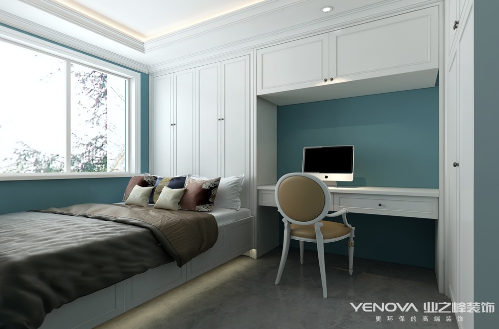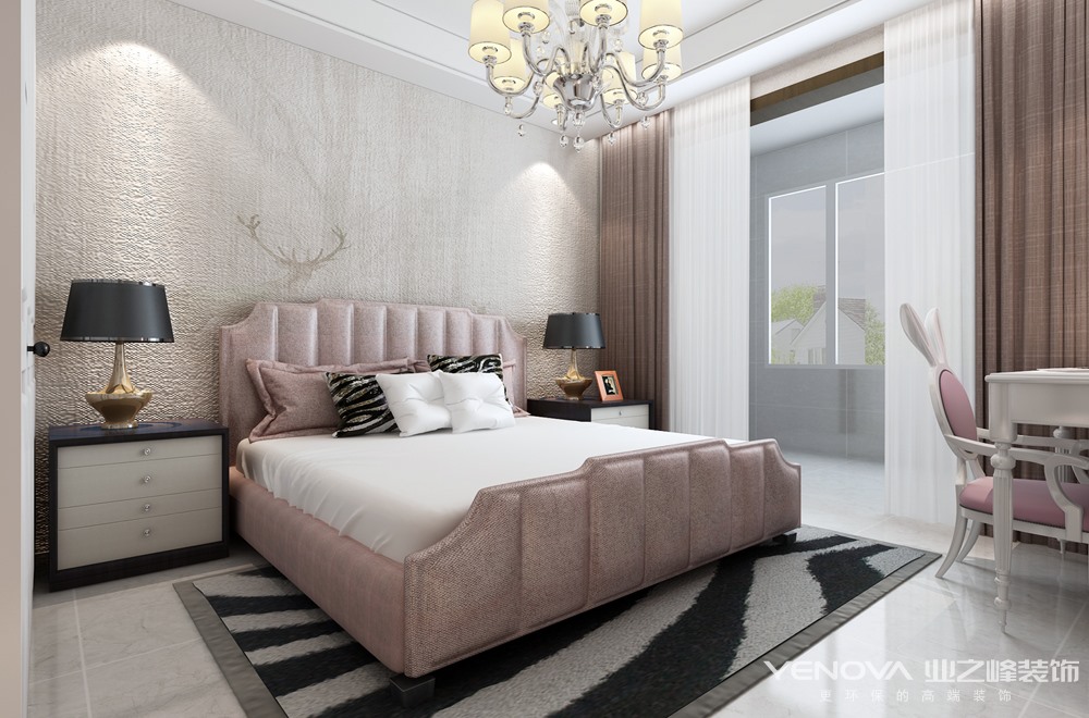 主卧以通透的空间结构,搭配素色皮革布面材质,形成对比,让空间在简约的同时更具跳跃性。