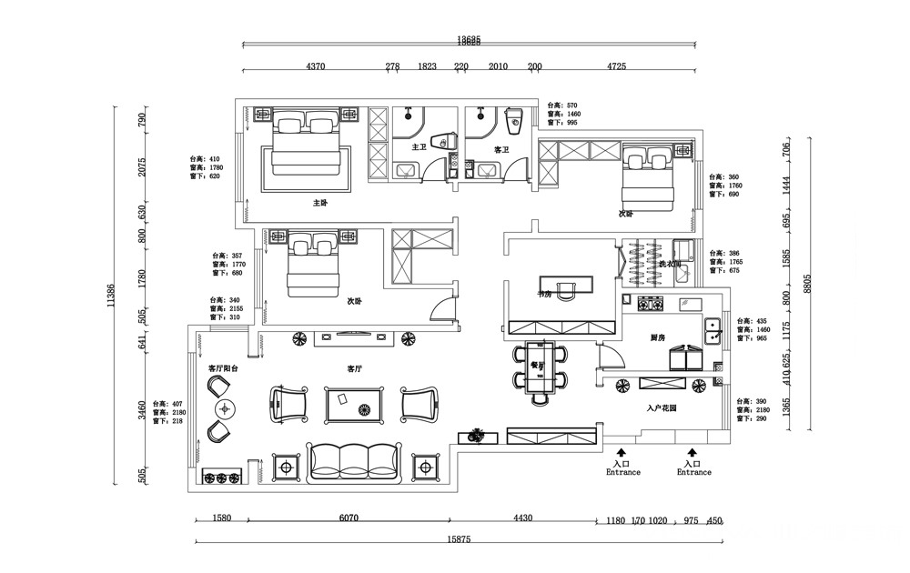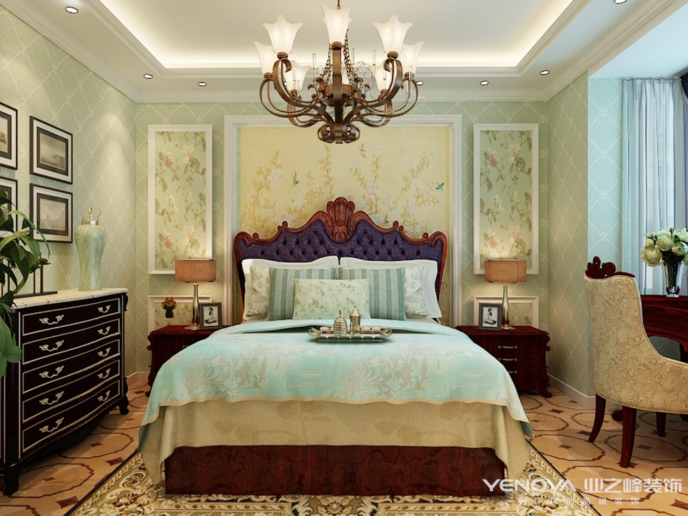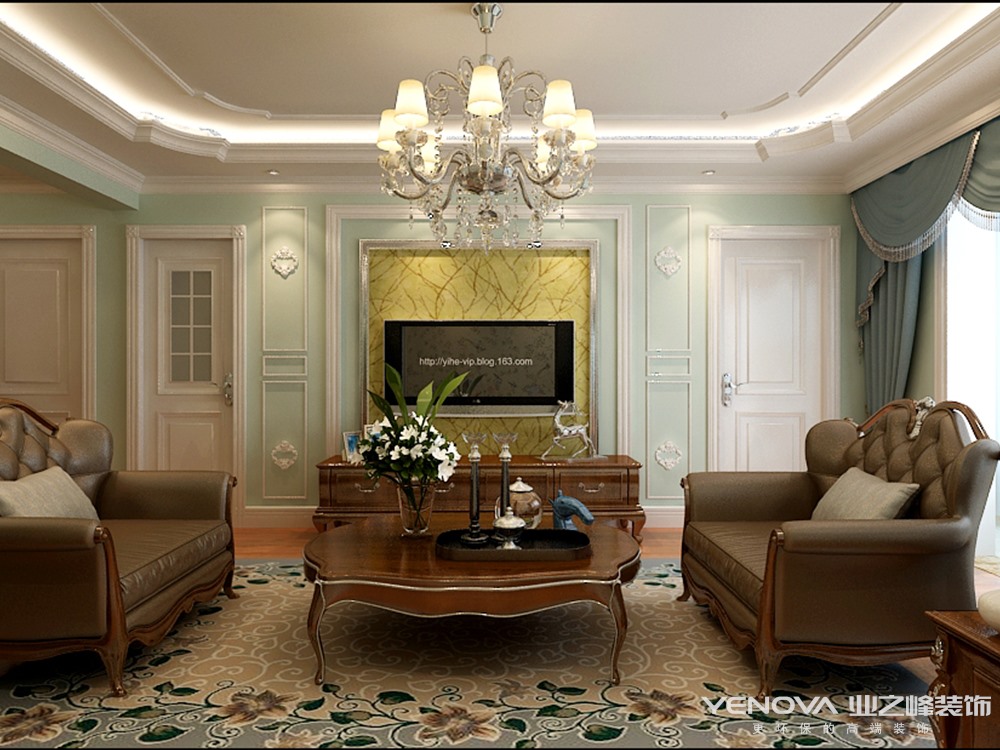 本案例针对业主需求,设计师为其甄选了欧式风格,古典欧式风格别墅装修最大的特点是在造型上极其讲究,给人的感觉端庄典雅、高贵华丽,具有浓厚的文化气息。在家具选配上,一般采用宽大精美的家具,配以精致的雕刻,整体营造出一种华丽、高贵、温馨的感觉。