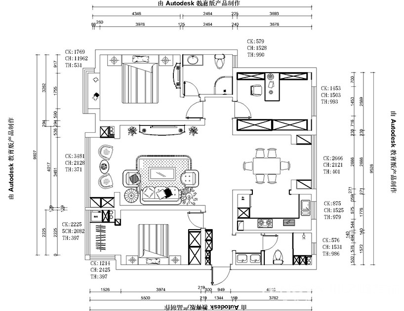 小区:天玺名著 面积:136㎡ 户型:三居 风格:其他