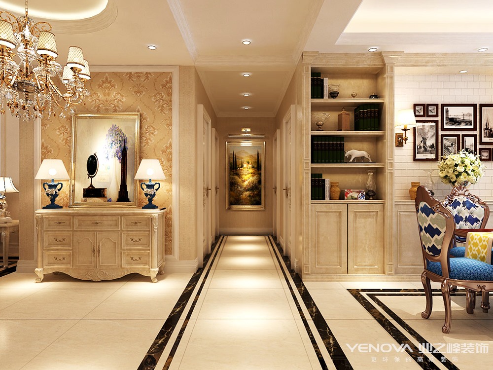 本案例针对业主需求,设计师为其甄选了欧式风格,古典欧式风格别墅装修最大的特点是在造型上极其讲究,给人的感觉端庄典雅、高贵华丽,具有浓厚的文化气息。在家具选配上,一般采用宽大精美的家具,配以精致的雕刻,整体营造出一种华丽、高贵、温馨的感觉。