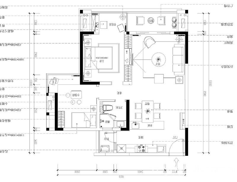 小区:华府新桃园 面积:105㎡ 户型:二居 风格:新中式风格