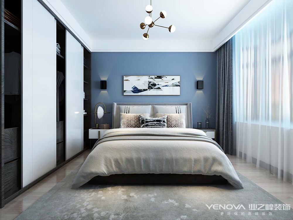 本套方案为现代简约风格,入户即为餐厅,做餐边柜,保证收纳的同时不失美观,餐桌采用圆角避免磕碰,整体色调清新明快,简约自然的氛围呈现主人的生活态度,蓝色和浅灰的卧室流动着一种温柔静谧的力量,简约却并不简单。