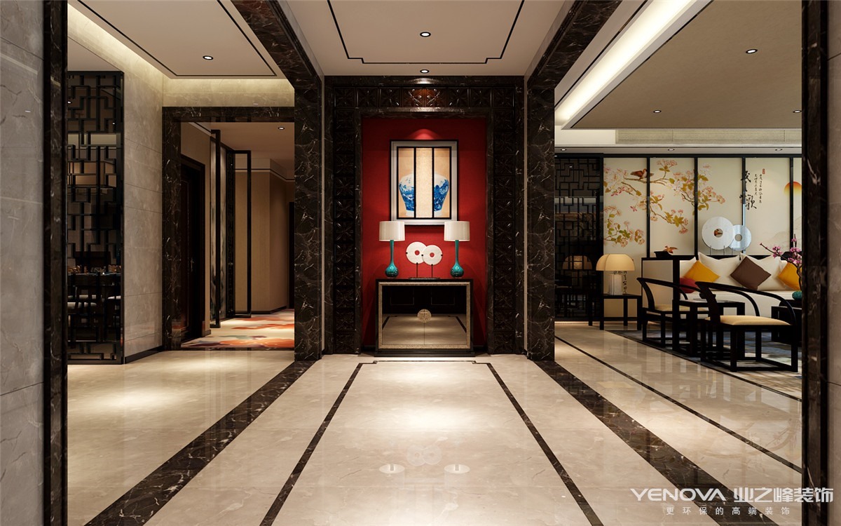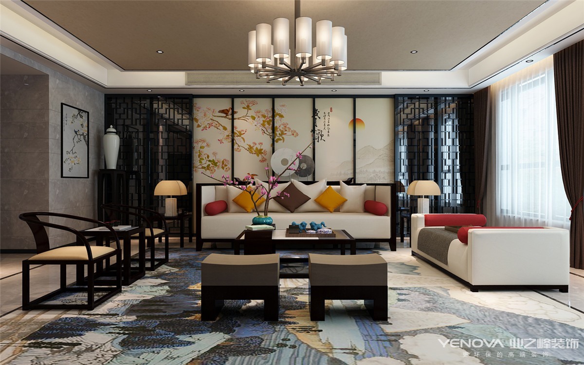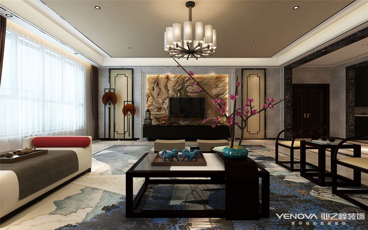 本案业主对传统文化颇有研究,故将风格定义为新中式风格。在设计中考虑更多的是如何将业主的个人喜好与设计风格统一,设计中通过对传统文化的表达,将现代文化和传统元素结合在一起,为体现现代感,对家具的选择上并未选择过多的雕刻装饰,仅仅选择了中式传统元素搭配,将传统中式底蕴和谐地渗入到现代居室中,中式的厚重铺垫,彰显主人的儒雅气质。营造一种江南水乡式的轻奢之感。