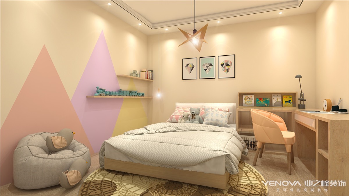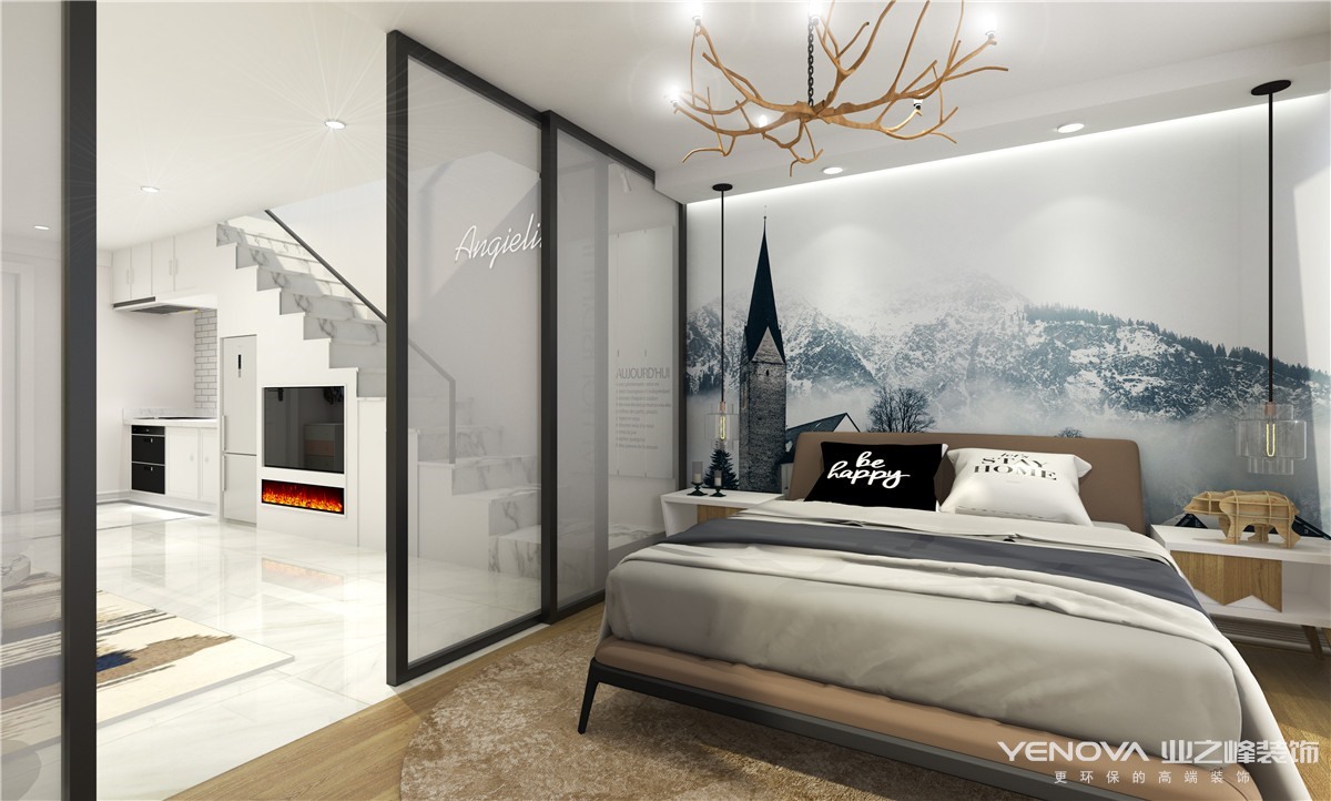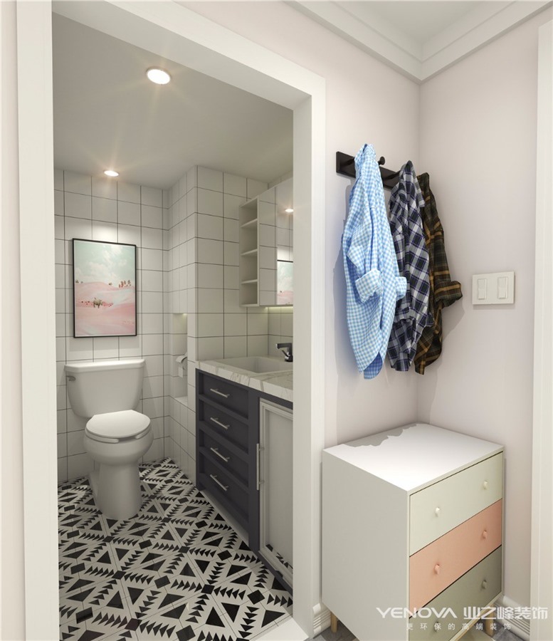 考虑到现在年轻人的生活方式以及生活习惯问题,在设计中没有用传统的封闭式厨房而采用了当下比较流行且适合年轻人的开放式厨房,节省了空间及采光面积,使整个房间更加的通透。二楼则是用大面积做了衣帽间,使得满足正常衣物及首饰的安放。利用借光的方式,将二楼隔除了一个房间,从而满足主人的需要。