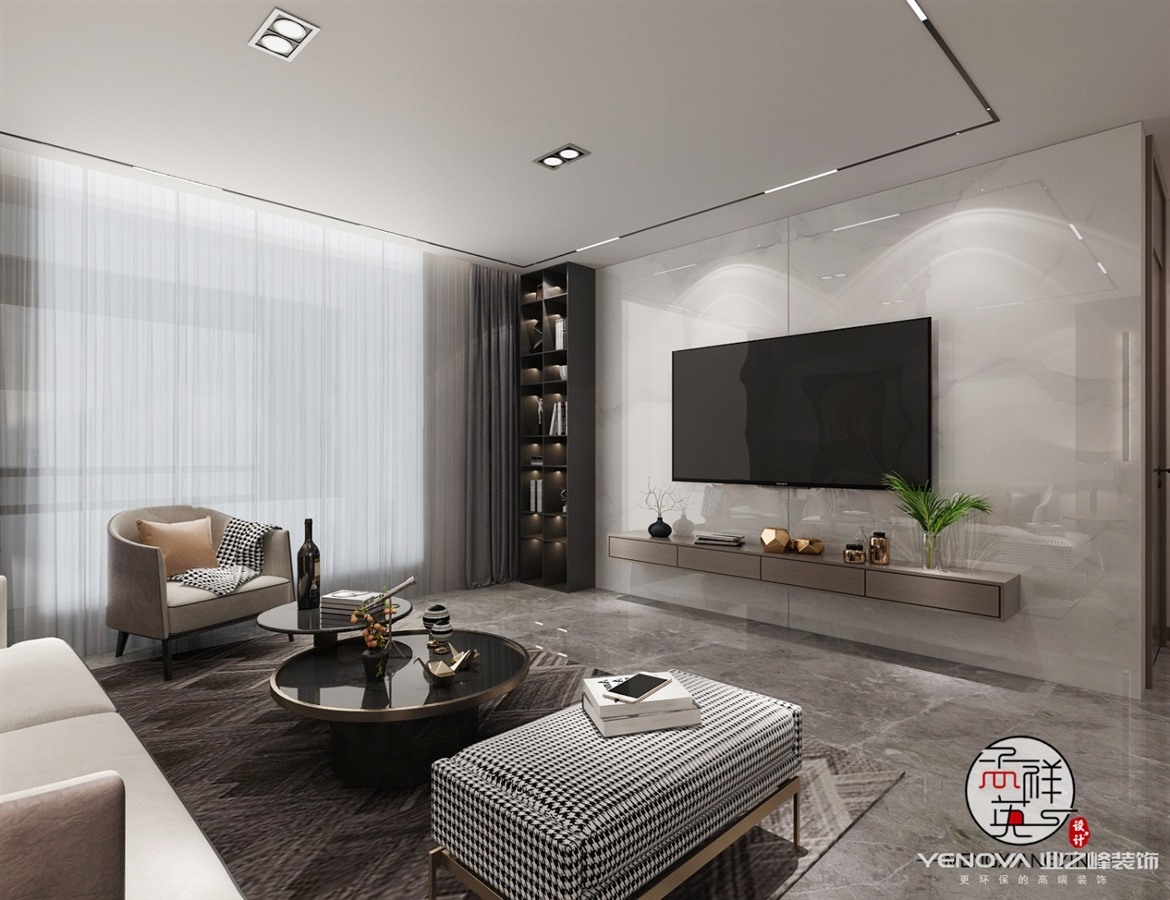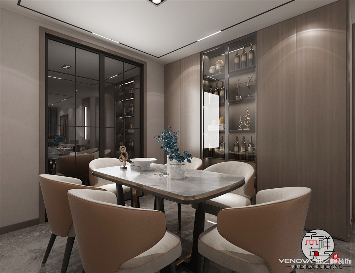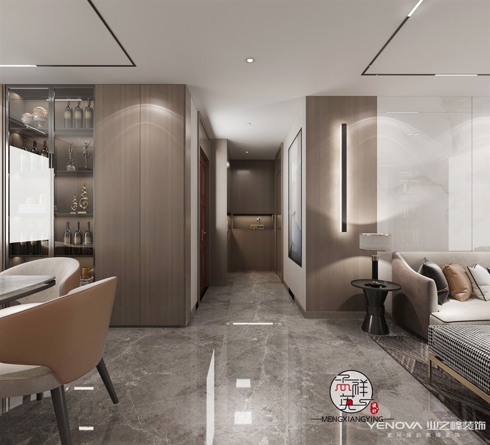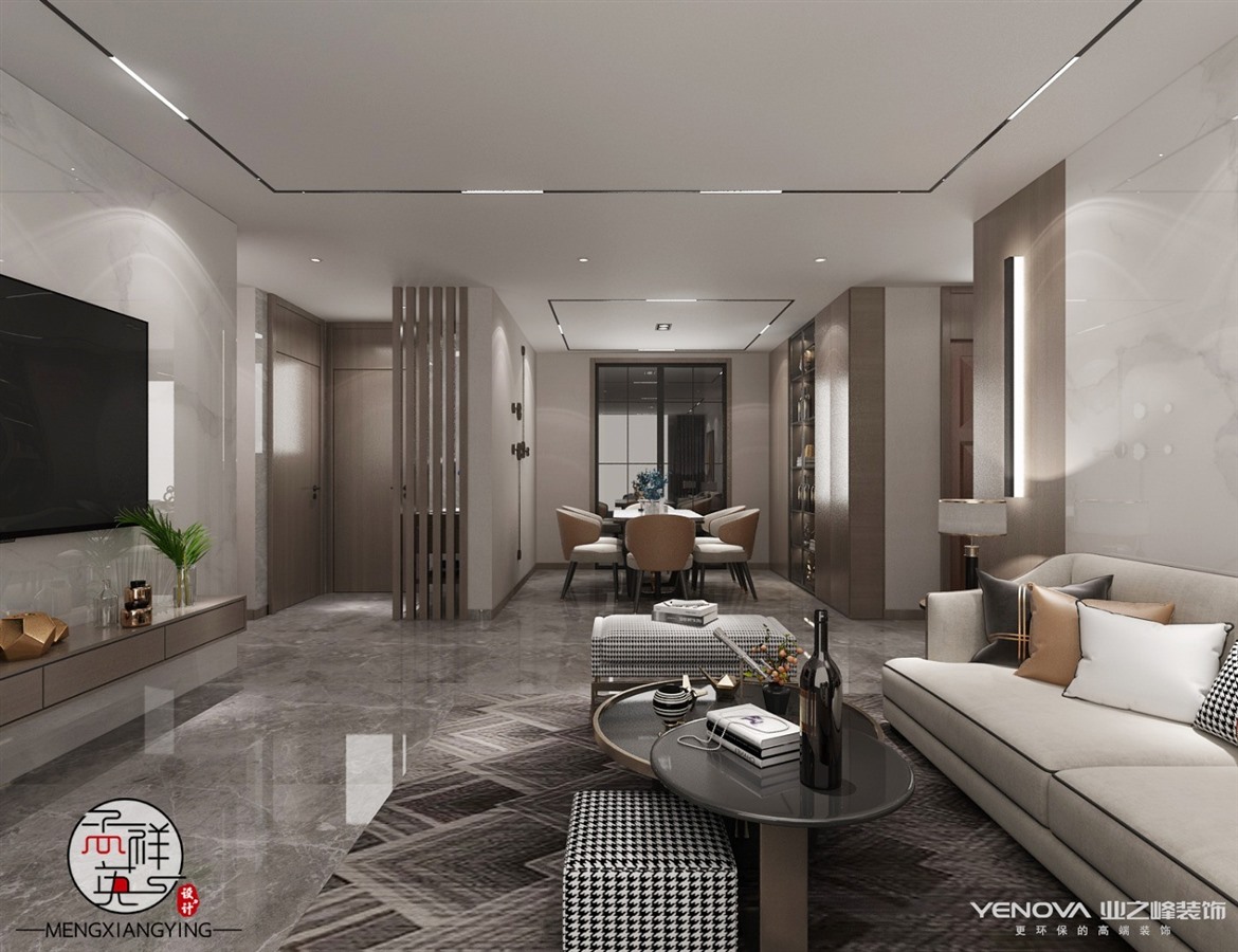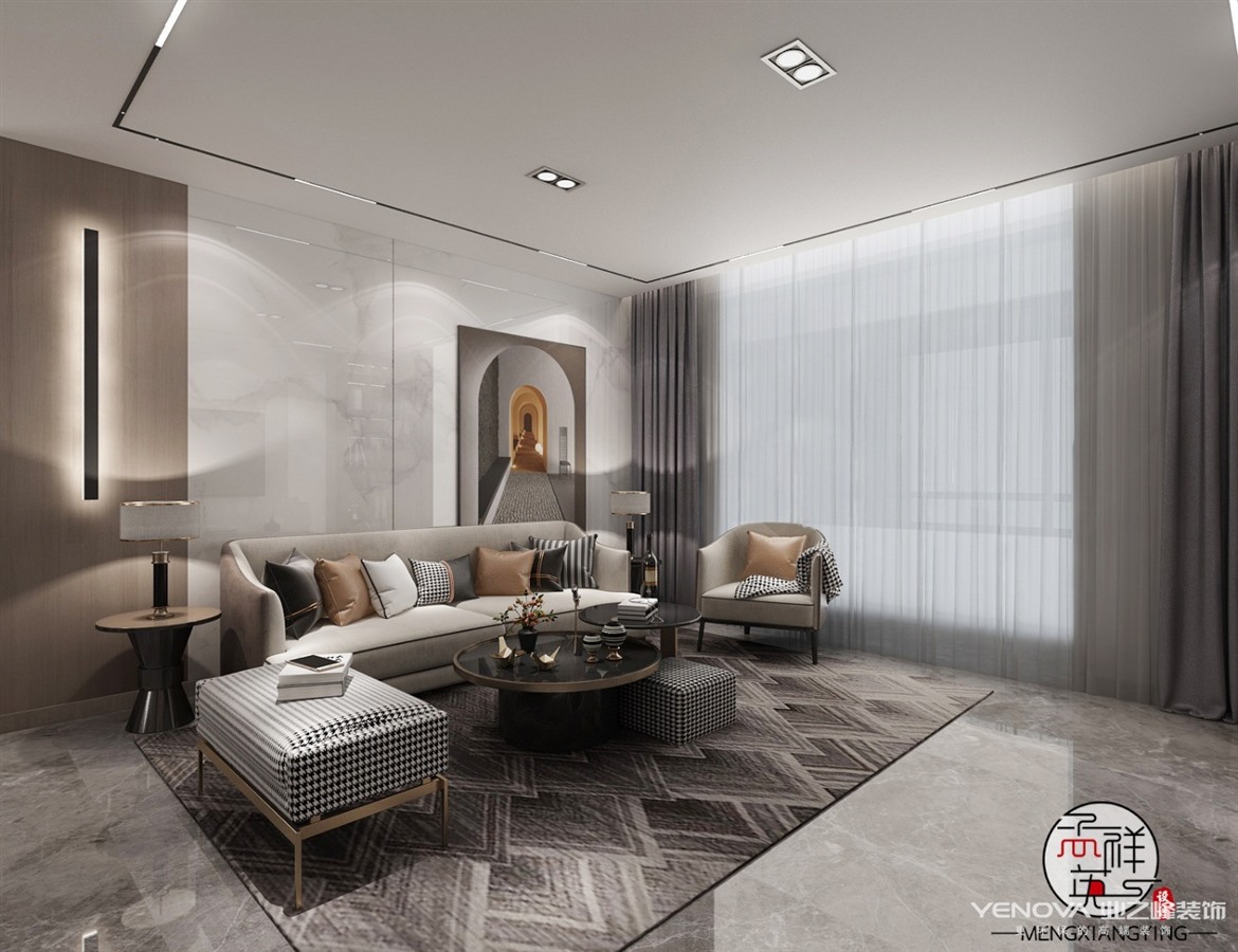 本案为轻奢现代,打造舒适风,以简约明亮为贯穿全局,配合无主灯设计、线条元素、大理石材质,营造利落、时尚、现代的质感。通过简洁的表现形式,来完成对空间环境感性、本能、及理性的需求。客厅采用无主灯设计,平顶的简洁干净,拉伸视觉层高,光线能够均匀散落,有层次地利用光线,使空间氛围更具格调。刻意采用磁吸灯的设计,简洁的造型却有着仔细的推敲,线性的牵扯与特性的发挥,创造出生动的画面感。