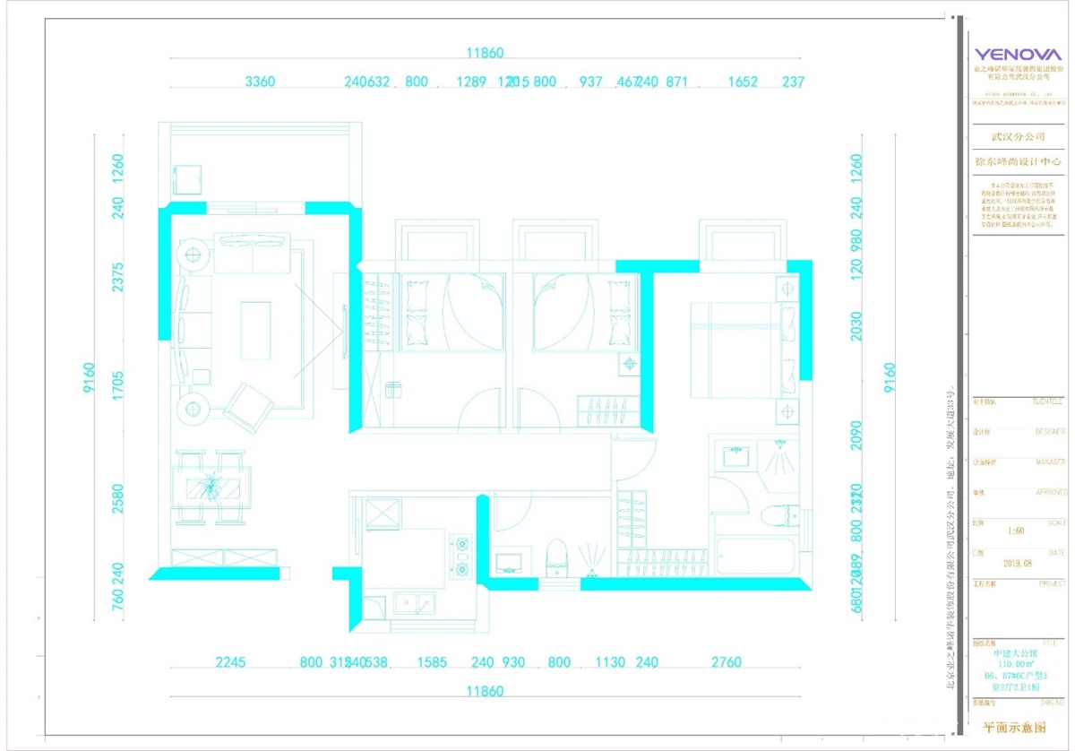 小区:中建大公馆 面积:103㎡ 户型:三居 风格:欧式风格