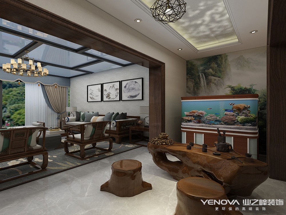 小区:地中海阳光 面积:300㎡ 户型:复式 风格:新中式风格
