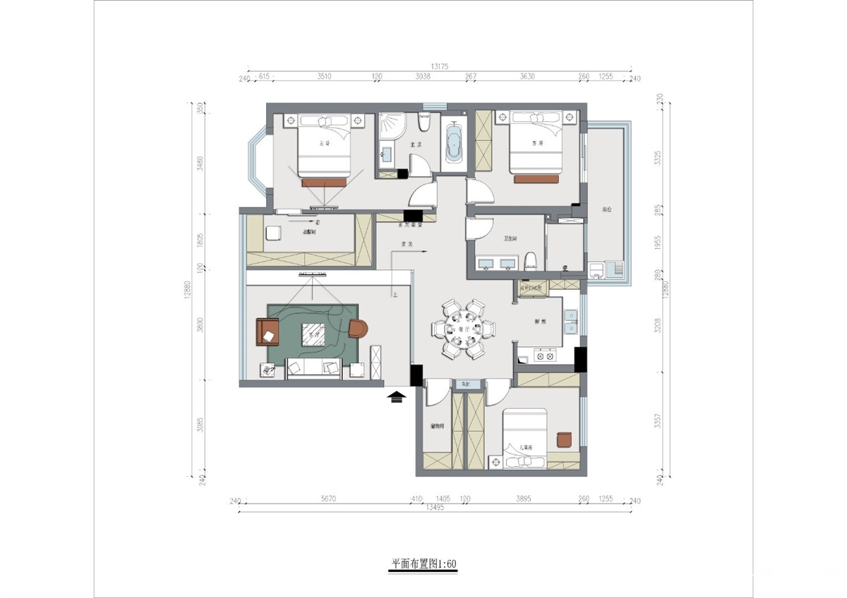 小区:常青花园 面积:150㎡ 户型:四居 风格:现代简约风格