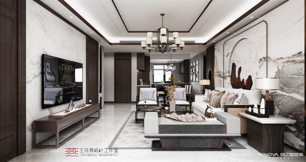 小区:华润置地公元九里 面积:140㎡ 户型:四居 风格:新中式风格