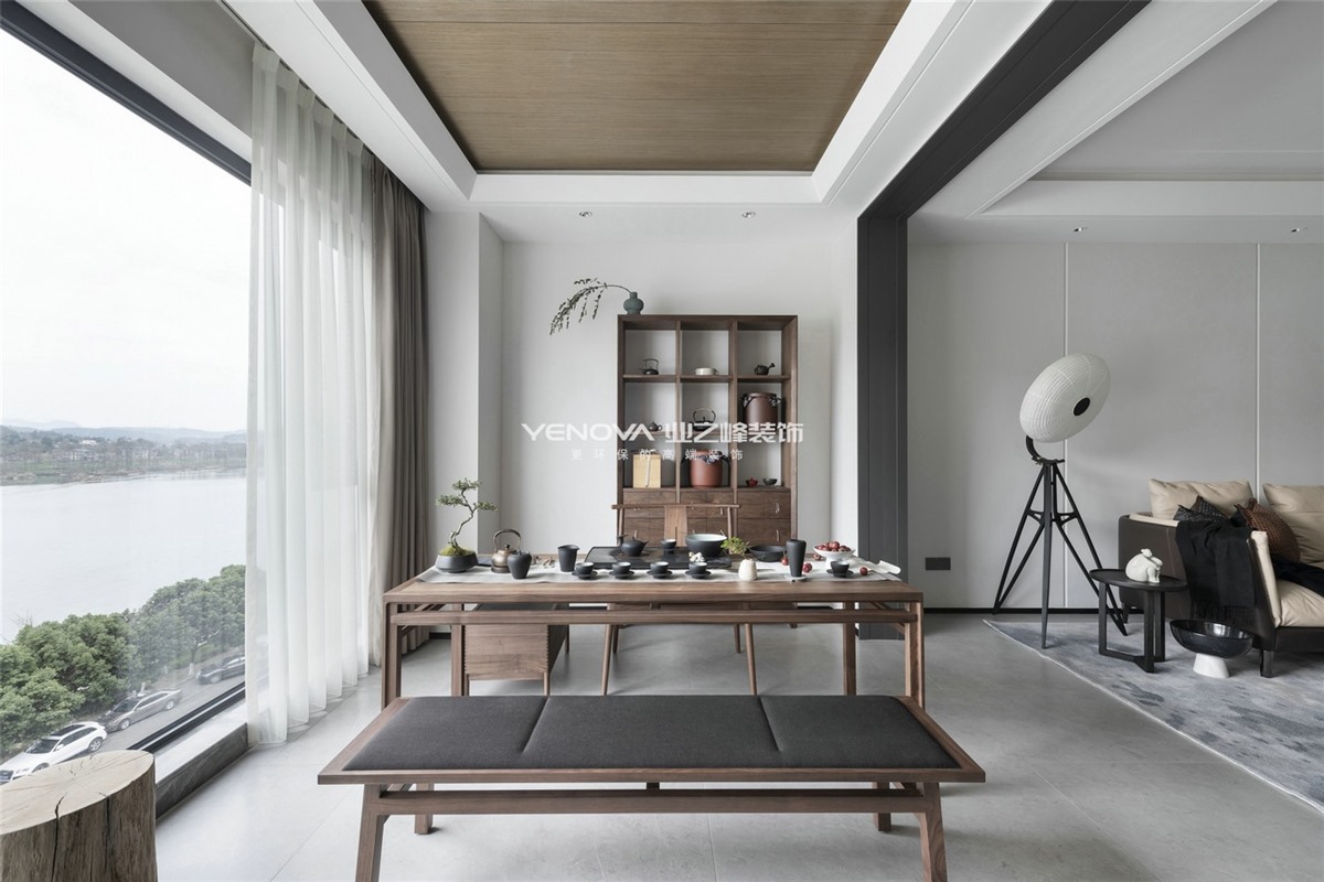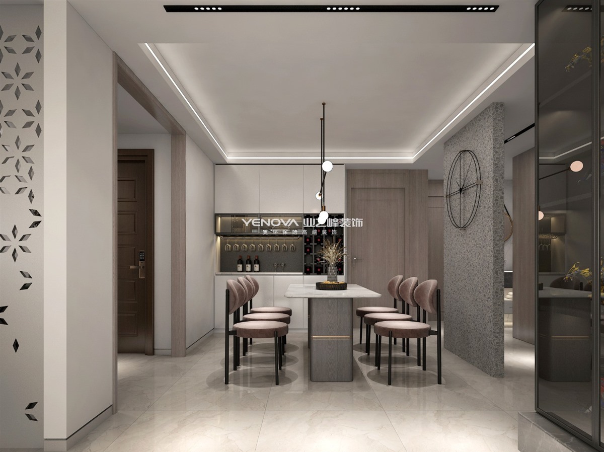 餐厅处做开敞空间,整体元素融合客厅的元素,银梨木色为空间主要木色,结合百搭的黑白色。