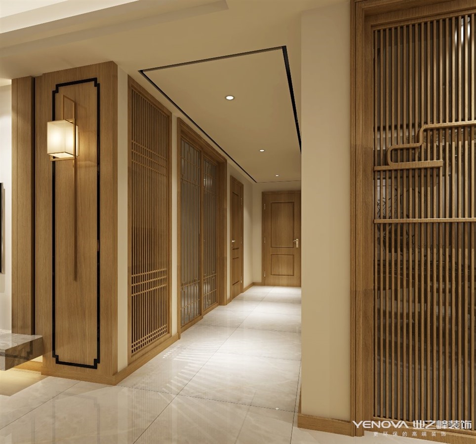 以人为本,设计充分把握引景入室的手法,采用大面积实木定制墙板,过道使用精美实木雕花让空间更灵动,改造了主卫,加入步入式的衣帽间,注释着业主生活的尊荣与典雅。
