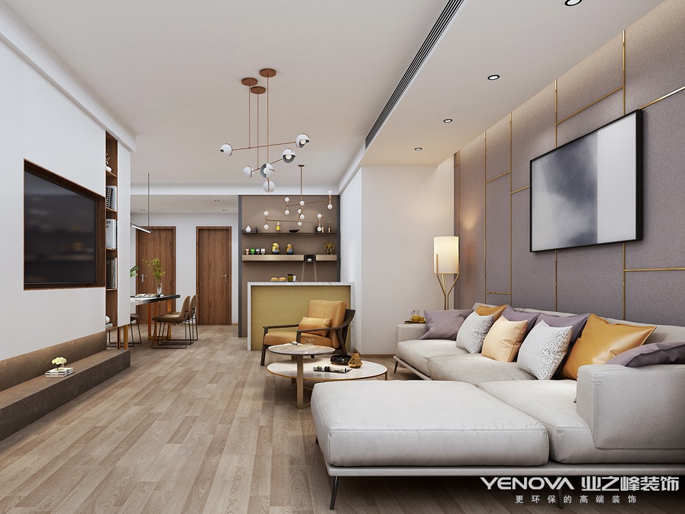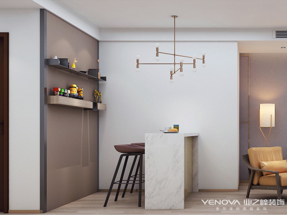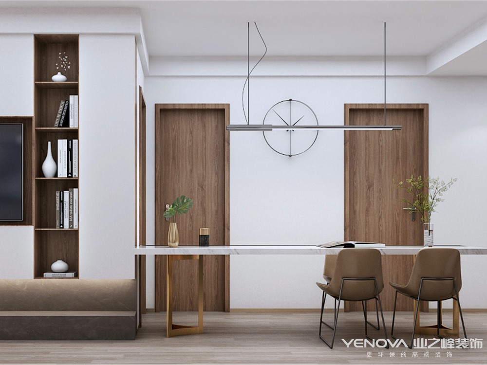 本案在空间上比较开阔,但是也是比较浪费,所以在规划上我选择尽量为以后三五年做规划,前期可能已装饰更多,但是随着时间流逝,对使用功能上也要留有预留空间,所以在电视背景造型上也是采用整体柜的设计,后期物品增多预留空间就显得尤为重要。同时餐桌位置也是做了一个小吧台,放松之余也可以起到与客厅交互的目的,不同位置人的心态也是不一样的,所以吧台空间更多十一个放空的地方。中间大过厅空间不好使用,所以我把这边作为一个餐厅空间,平时一个作为进餐地方,另一面也可以根据业主工作需求作为一个临时办公空间,后面业主有了小孩,在客厅看孩子至于也有自己办公空间可以兼顾,业主对这个认可度还是很高的。