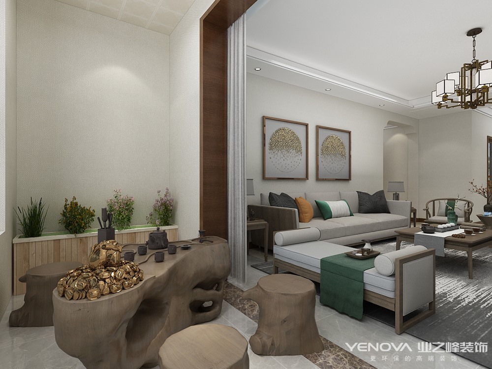 小区:文昌湖海和苑 面积:160㎡ 户型:四居 风格:新中式风格