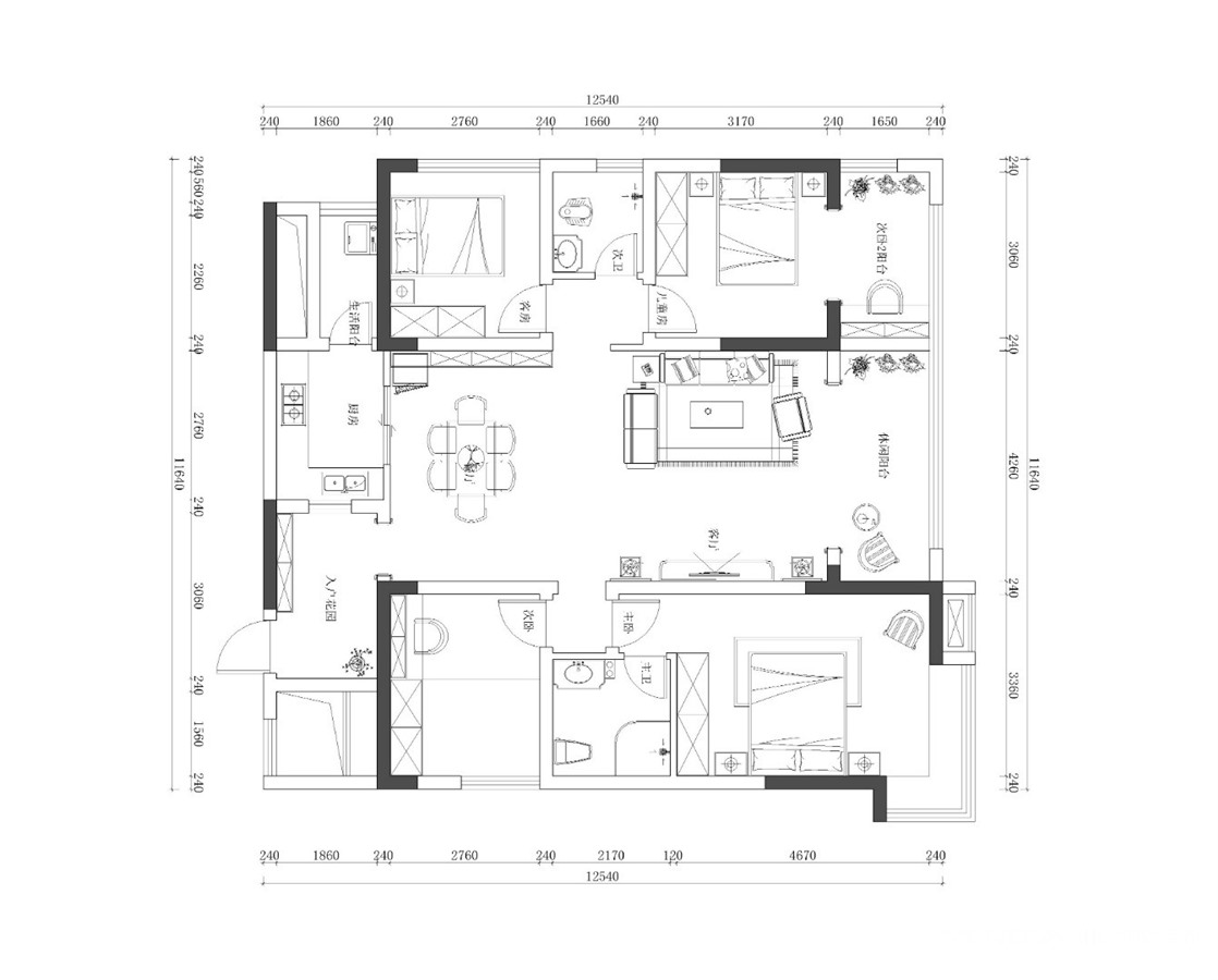 小区:洲际银海湾 面积:148㎡ 户型:四居 风格:美式风格
