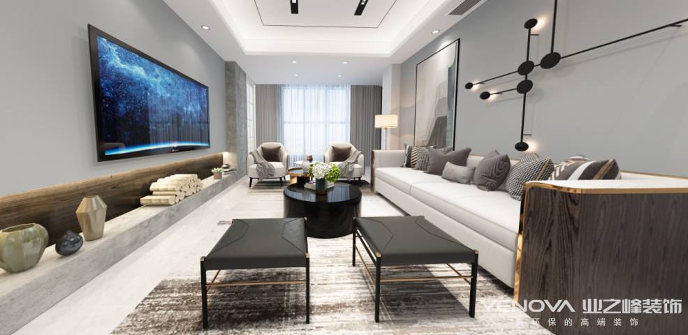 本案的设计风格为现代简约,以功能为第一原则,提倡简约,简约风格的特色是将设计的元素,色彩,照明,原材料简化到最少的程度,但对色彩,材料的质感要求很高。因此,简约的空间设计通常非常含蓄,往往能够达到以少胜多,以简胜繁的效果,简约不等于简单,以简洁的造型,完美的细节,营造出时尚前卫的感觉。围绕业主夫妇是上班族,平时上班比较忙,现代的设计让业主回到家中能够得到放松。