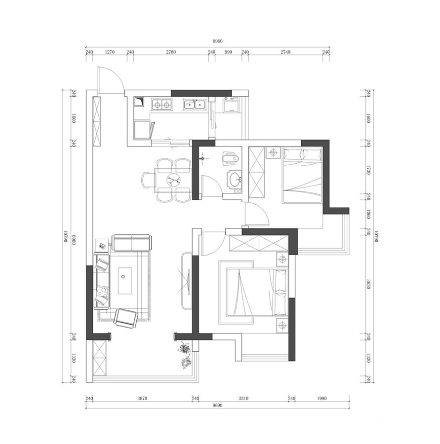 小区:白虎滩小区 面积:83㎡ 户型:二居 风格:现代简约风格