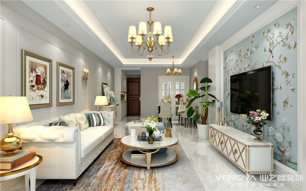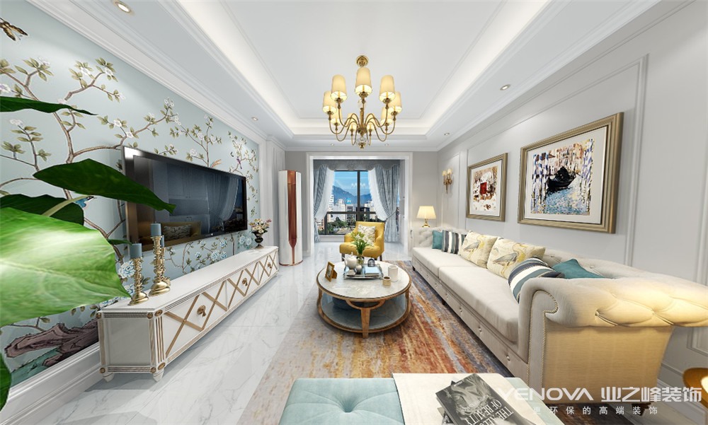一个带着春天般气息的简欧风,敞亮清新。去繁就简留下简单的线条,用室内软装陈设来增强特色烘托雅致的气氛,客厅中地毯的图案相对繁琐与各家具的相对简洁,形成了鲜明的对比,使客厅简洁而又不失趣味。