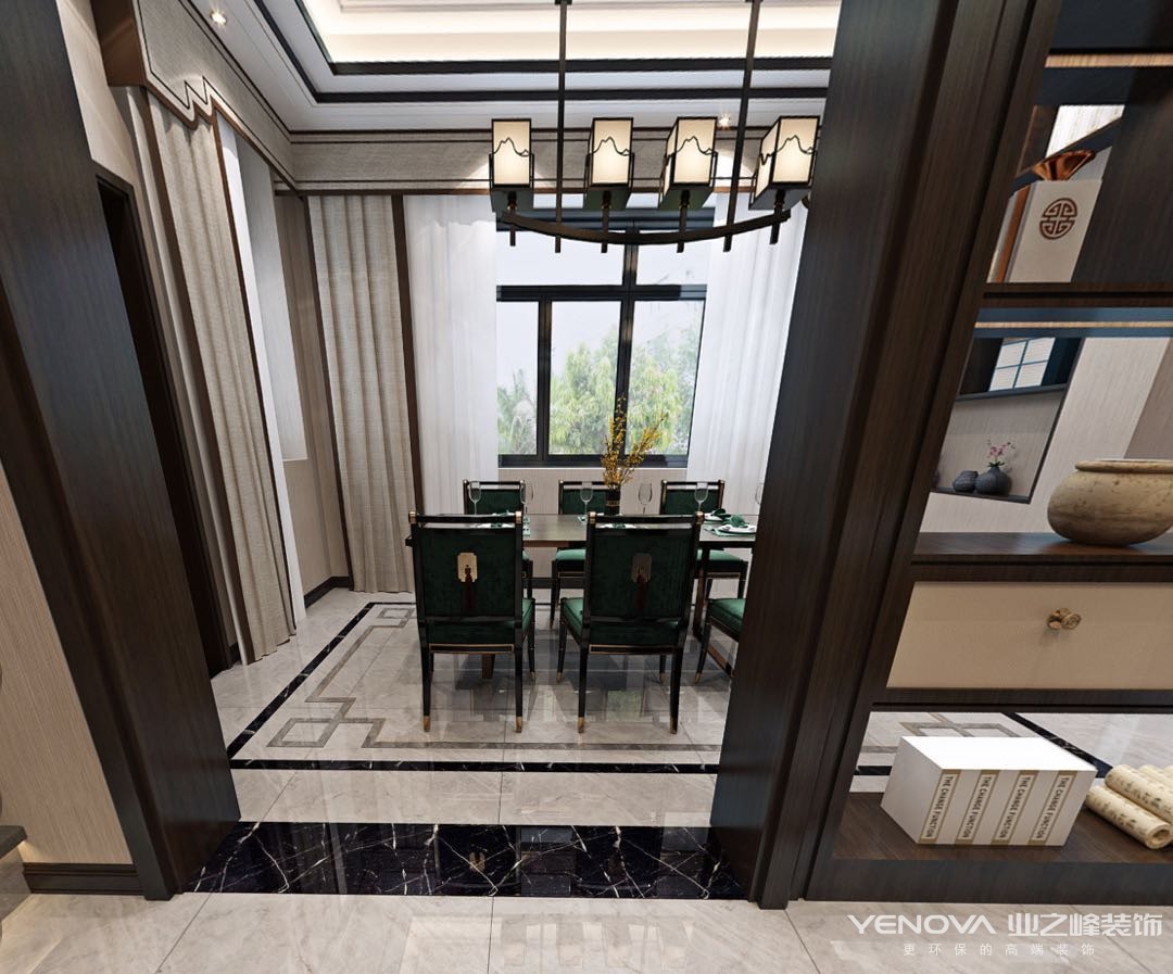 本案的设计风格为新中式,本案中业主中年人士从商多年,事业有成,三代居住,沉稳独特的中式风格设计无疑是最能凸显客户品味的。
