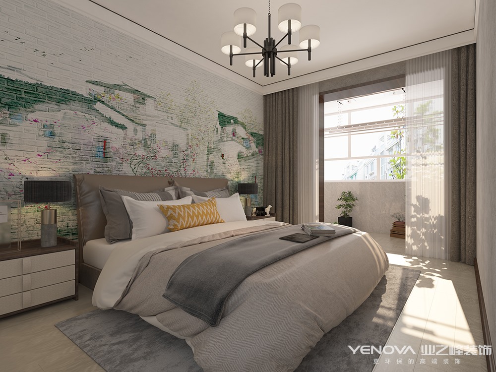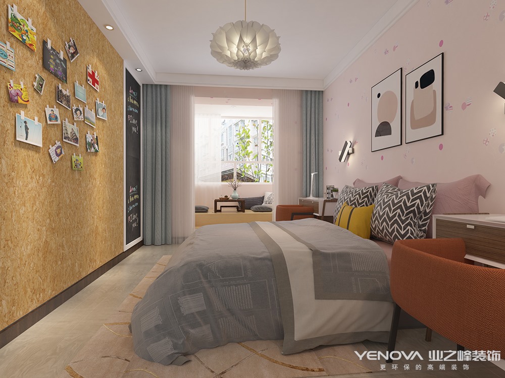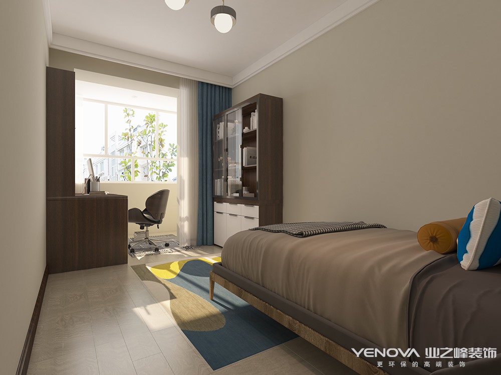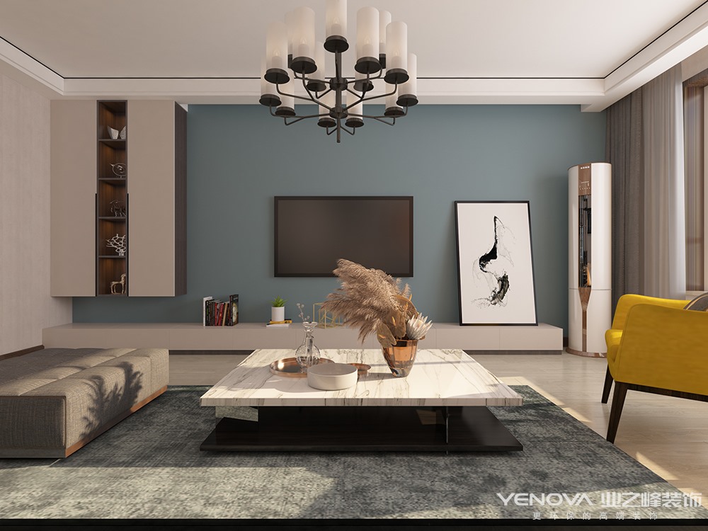 本方案为现代简约风格,业主是两位老师,主张简约实用,男业主有很多书籍,所以电视墙安排了书柜。蓝色代表了沉稳,让人在客厅空间内可以更加冷静。女主人是一个内心充满诗意,很文静的妈妈,主卧室的背景特意为她选择了水乡的壁画。两个女儿以后会在次卧室一起住,书桌和床尾的写字板都是一人一个的,中间是记录两个孩子成长的照片墙,十分的温馨。