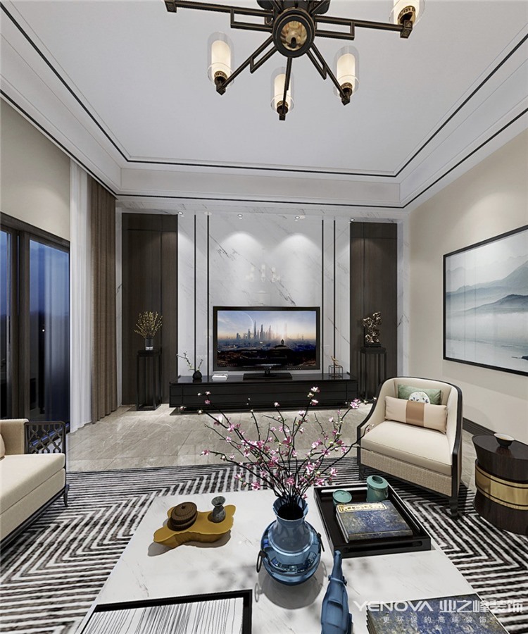 本案为成都业之峰装饰新中式案列,古典质感与现代潮流相互碰撞,让整个厅堂剔除繁杂、告别沉闷,处处散发着简洁优雅、唯美大气的层次之美。象牙白大理石茶几消解了严肃的氛围,打通了严谨与随性之间的互动。黑铁凳椅扶手的线条延伸折转,辅以在百花凋零的隆冬绽放的腊梅点缀,骄傲夺目。靠背抱枕,摆件等装饰细节,采用跳脱的亮色,打破空间的单调感,与整体气质和谐统一,巧妙地传达着家居主的生活小趣味 ...