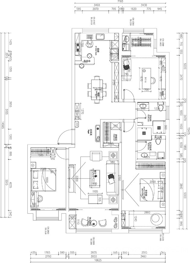 从平面布局上做了局部微调用来增加收纳的便利性及线条的流畅性,格调定性上本着以“镜”代“形”的原则,突出表达造型美感。因此我们以中式的设计手法为出发点,利用“木质”与“金属”对话的形式塑造这个项目,其中“收纳”与“视觉感受”是本案的重点,打破传统样板间只注重“视觉感受”不注重“生活方式引领”的弊端,力求将二者结合,打造真正适合都市白领的逸居住宅。