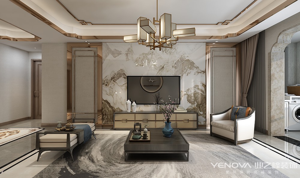 小区:金科博翠园 面积:135㎡ 户型:三居 风格:新中式风格