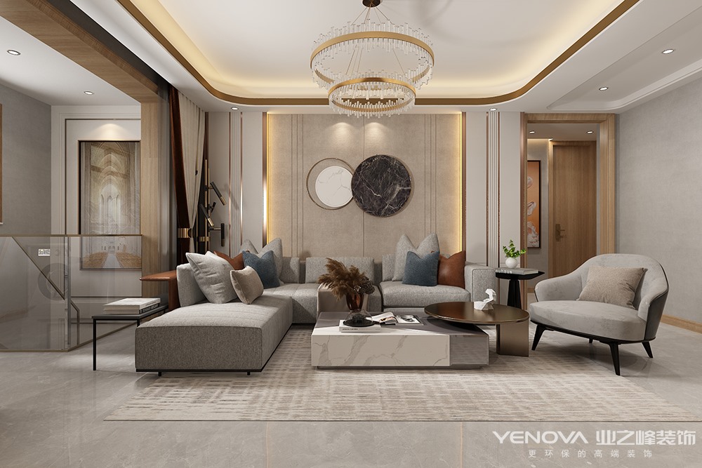 本套方案为现代轻奢风格,通过空间布局上的合理运用,既能在生活上满足客户的需求,又传达出现在轻奢风格独特的灵魂。用利落的线条完美的材质和高档的家具赋予了空间生命力。亮色的点缀和搭配能产生别样的美,为家居带来舒适和安逸。