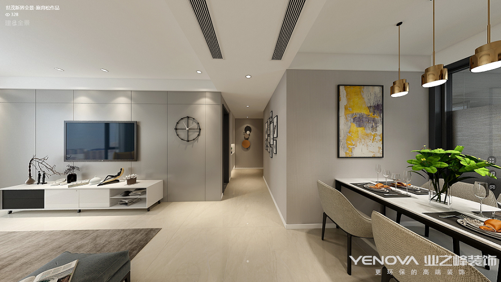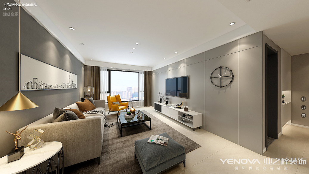 小区:世茂新界 面积:104㎡ 户型:平层 风格:现代简约风格