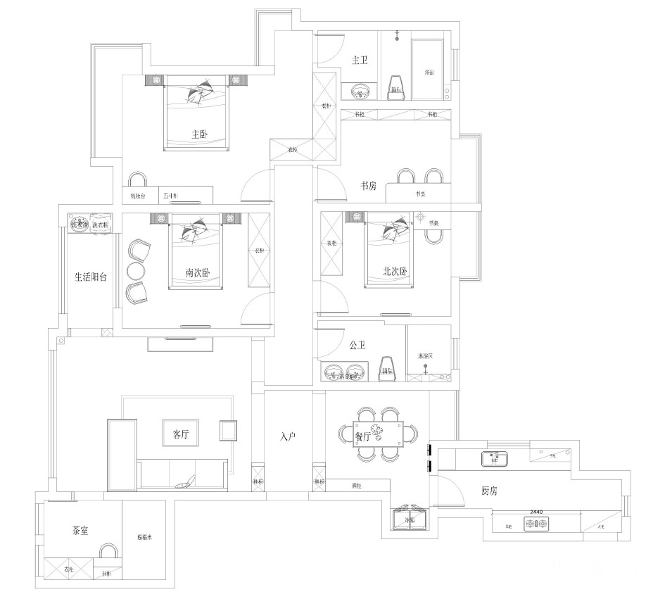小区:汇和家园 面积:175㎡ 户型:五居 风格:简欧风格