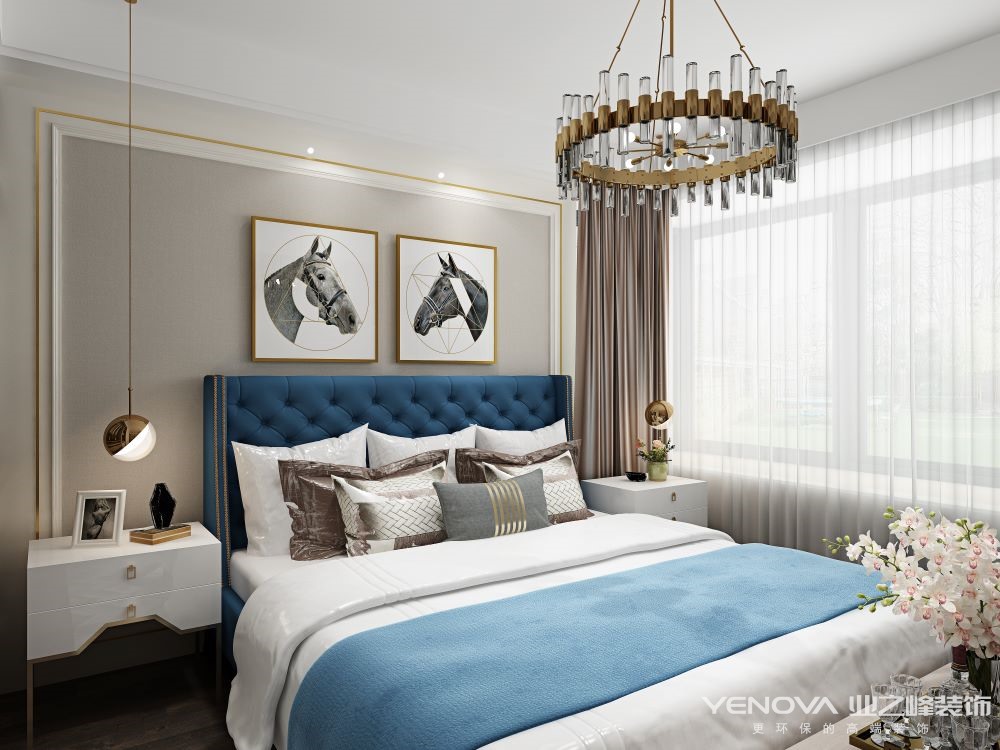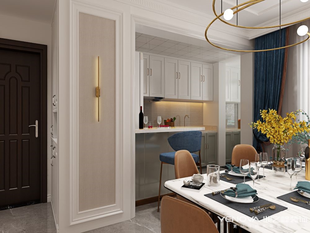 从整体的设计上来说,很多高级设计师摒弃了传统法式风格所突出的繁复、奢华的装饰与甜腻的色泽,而选择淡雅、低调的设计来打造现代式的轻奢感。主要突出对称的布局方式,再结合几何线条与浅色的空间色彩,打造出一个法式轻奢主义的空间格调。