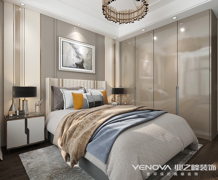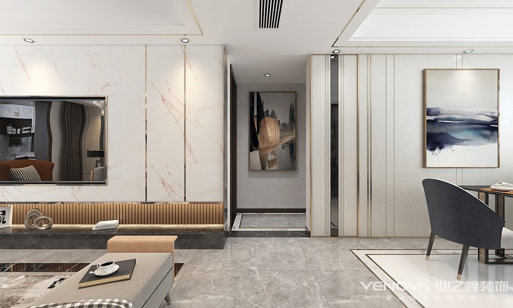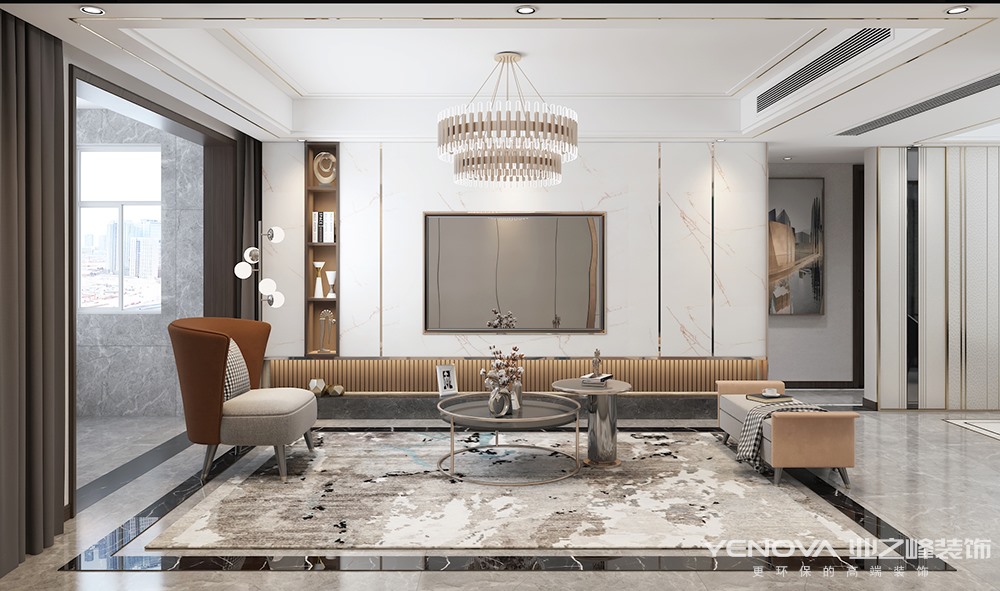 本套方案为现代轻奢风格,通过空间布局上的合理运用,既能在生活上满足客户的需求,又传达出现代轻奢风格独特的灵魂。用利落的线条完美的材质和高档的家具赋予了空间生命力。亮色的点缀和搭配能产生别样的美,为家居带来舒适和安逸。