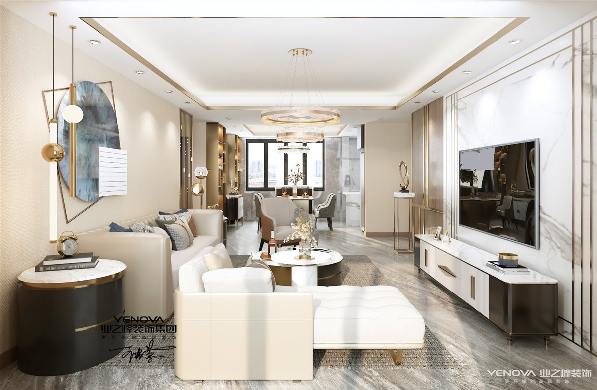 本套方案为现代轻奢风格,通过空间布局上的合理运用,既能在生活上满足客户的需求,又传达出现代轻奢风格独特的灵魂。用利落的线条完美的材质和高档的家具赋予了空间生命力。亮色的点缀和搭配能产生别样的美,为家居带来舒适和安逸。