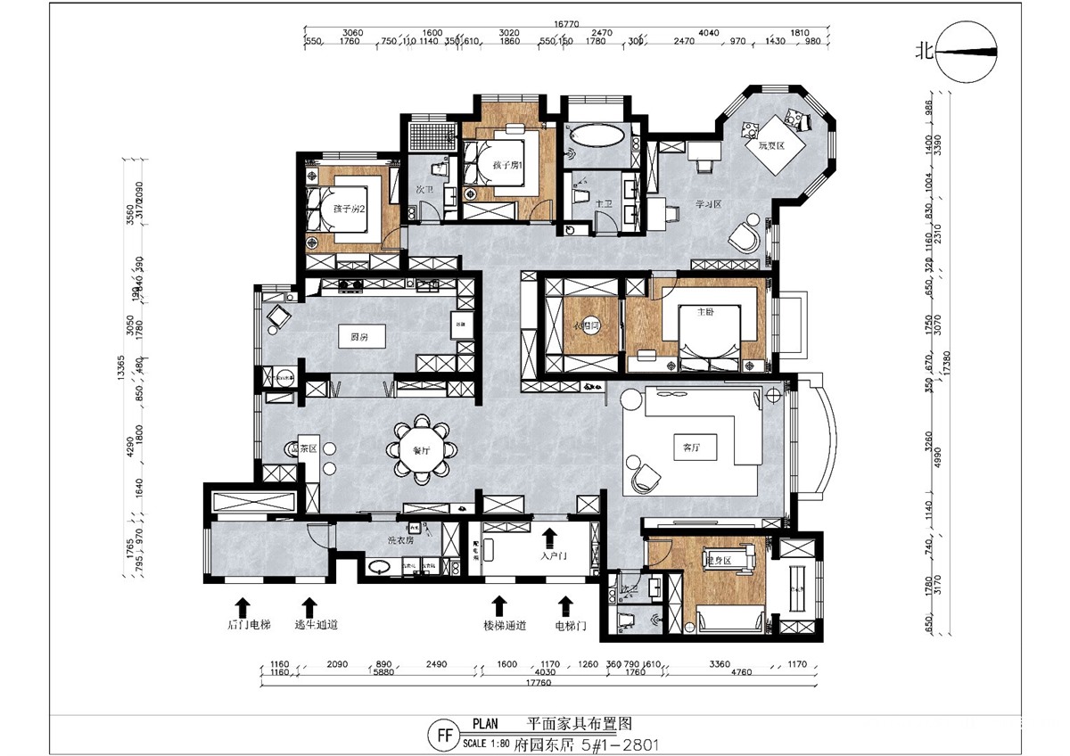 小区:府园东居 面积:135㎡ 户型:四居 风格:现代简约风格