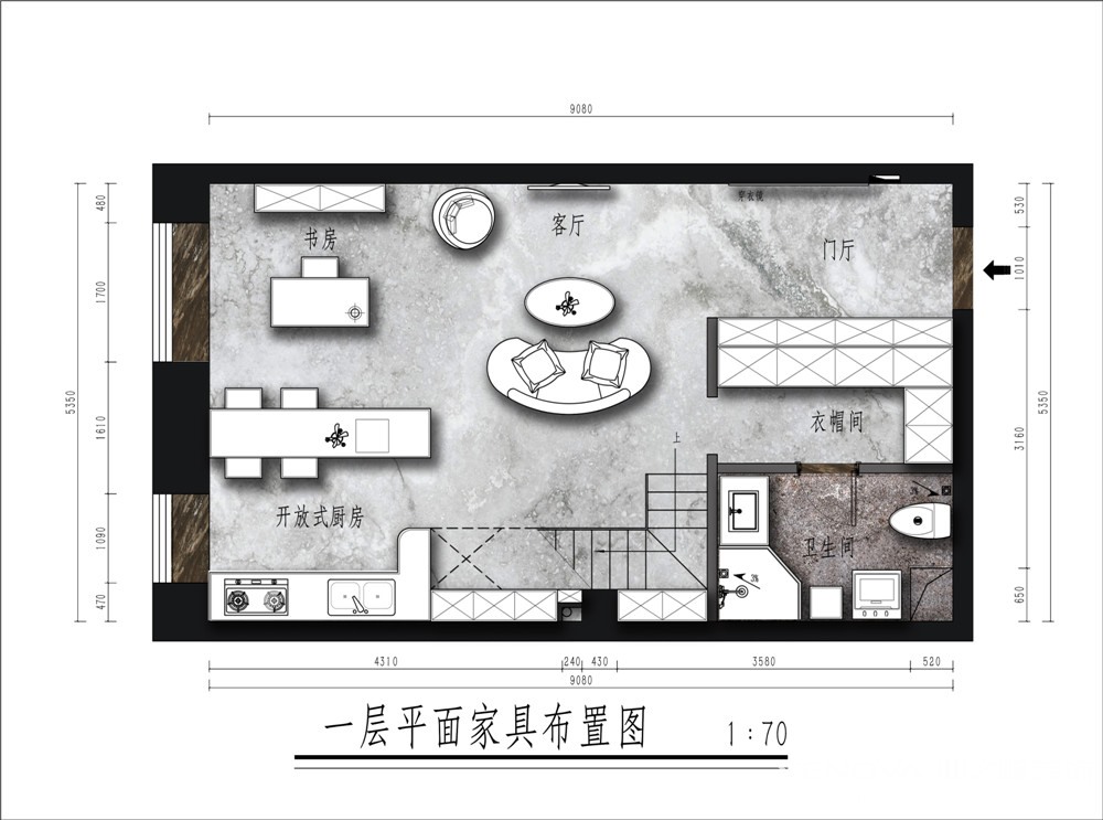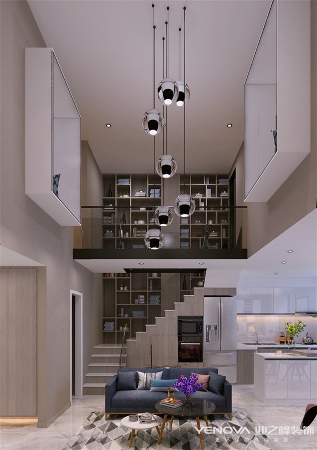 为了使阳光和空气流通最大化利用,设计师并没有将空间用墙隔断,而是巧妙的运用软装来分隔室内空间。