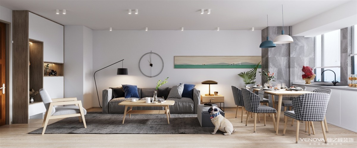 此户型是两个LOFT构成的220平米三房两厅一厨二卫的户型。业主是一家四口,夫妻俩带一个小孩和一个老人。业主对生活品质和收纳储物空间有非常高的要求,另外要求每个空间都比较大,干净整洁,功能完整,色彩协调统一,合理利用空间,设计布局完善。在原始结构可改动的情况下把一楼的两个房间合成一个房间,两个客厅合为一个,拆除其中一个厨房,一部分面积用于餐厅,另外一个厨房向原客厅扩,这样厨房就比较大,满足家人做饭空间的舒适性。