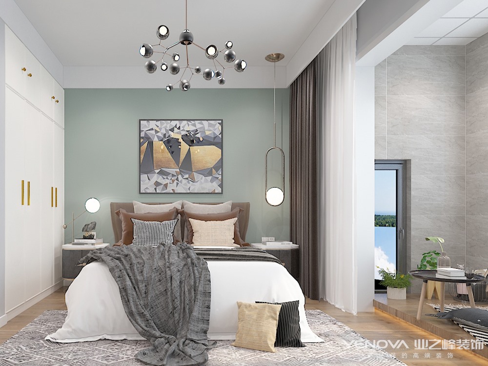 整体定位现代休闲,整屋大色块手法处理,浅灰色的墙面颜色,灰绿色局部跳色。客厅灰色地砖铺装,卧室木色地板,色调清新淡雅,轻松舒适……