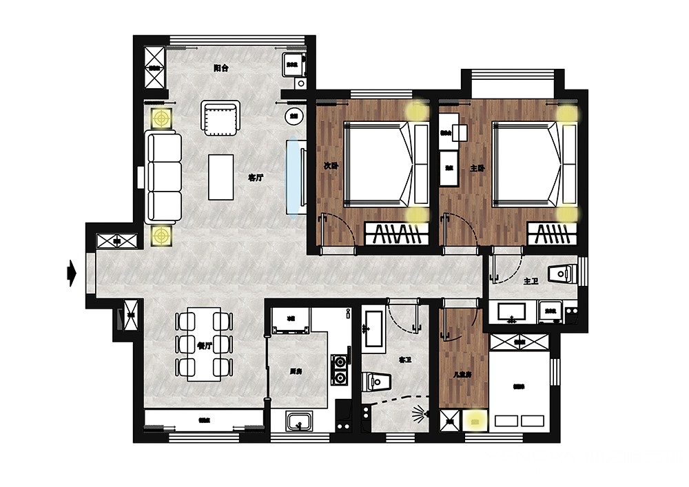 小区:格调松间 面积:140㎡ 户型:三居 风格:现代简约风格