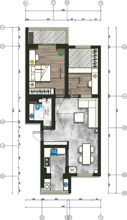 小区:馨苑新城 面积:80㎡ 户型:二居 风格:现代简约风格