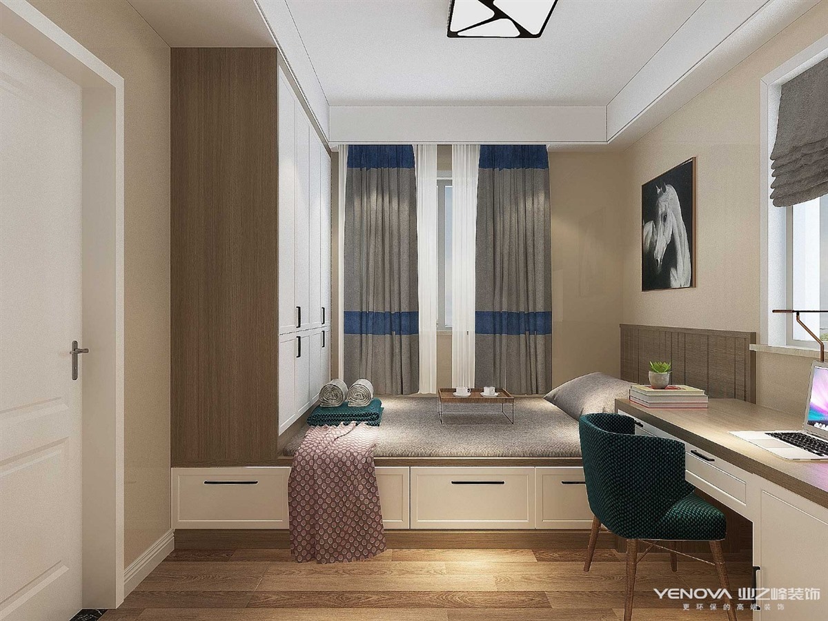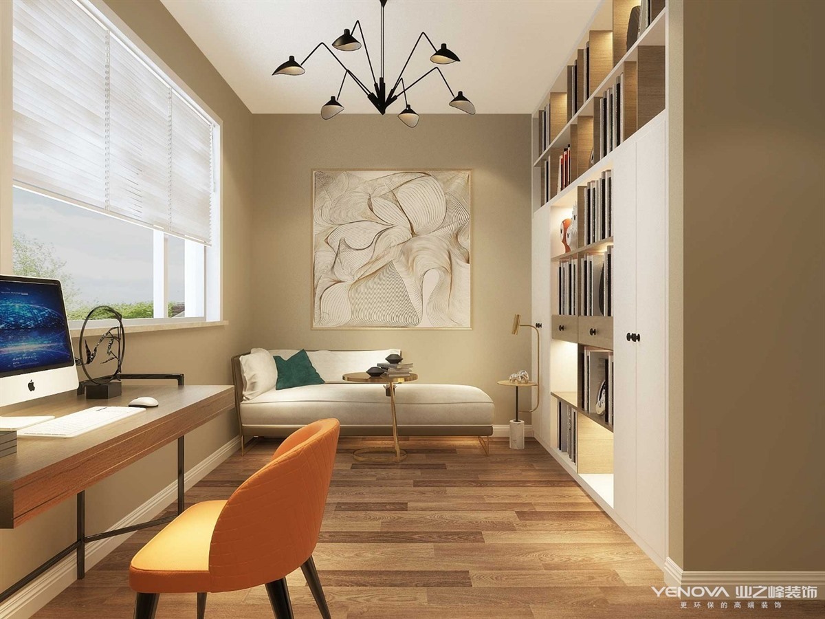业主一家四口,孩子和大人一起居住,需要卧室较多兼备孩子的办公区域和家长的私人书房,家里储物需要大量空间,又要美观隐蔽,所以在过道区域设置了独立的储物空间,同时也为家里老人添加了休息空间,,客厅与餐厅浑然一体,使整个空间更加明亮和温馨。整体空间以古典美式为主,搭配线条的装饰风格,达到了自然与生活浑然一体,整体环境干净明亮但并不冰冷。各个空间满足客户需求