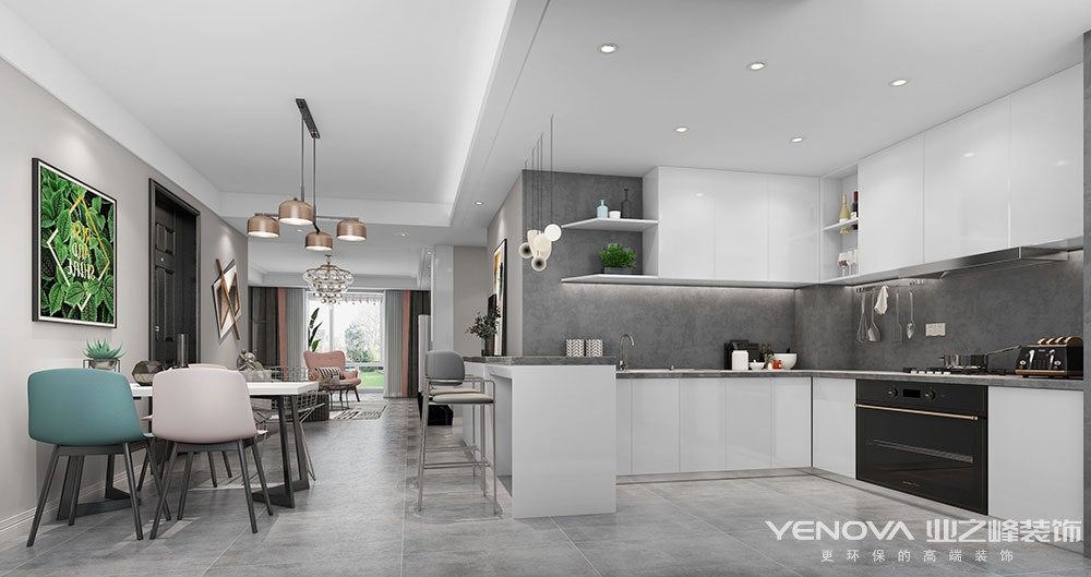 现代设计追求的是空间的实用性和灵活性。居室空间是根据相互间的功能关系组合而成的,而且功能空间相互渗透,空间的利用率达到最高。空间组织不再是以房间组合为主,空间的划分也不再局限于硬质墙体,而是更注重会客、餐饮、学习、睡眠等功能空间的逻辑关系。通过家具、吊顶、地面材料、陈列品甚至光线的变化来表达不同功能空间的划分,而且这种划分又随着不同的时间段表现出灵活性、兼容性和流动性。