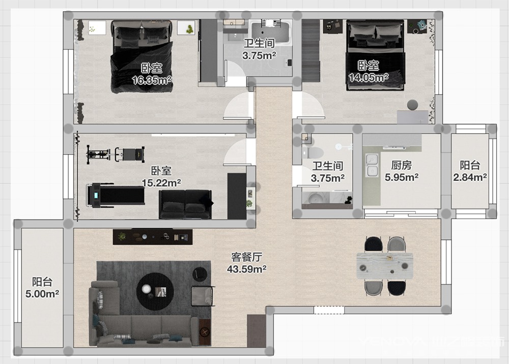 130㎡三居现代简约风格瑞江花园