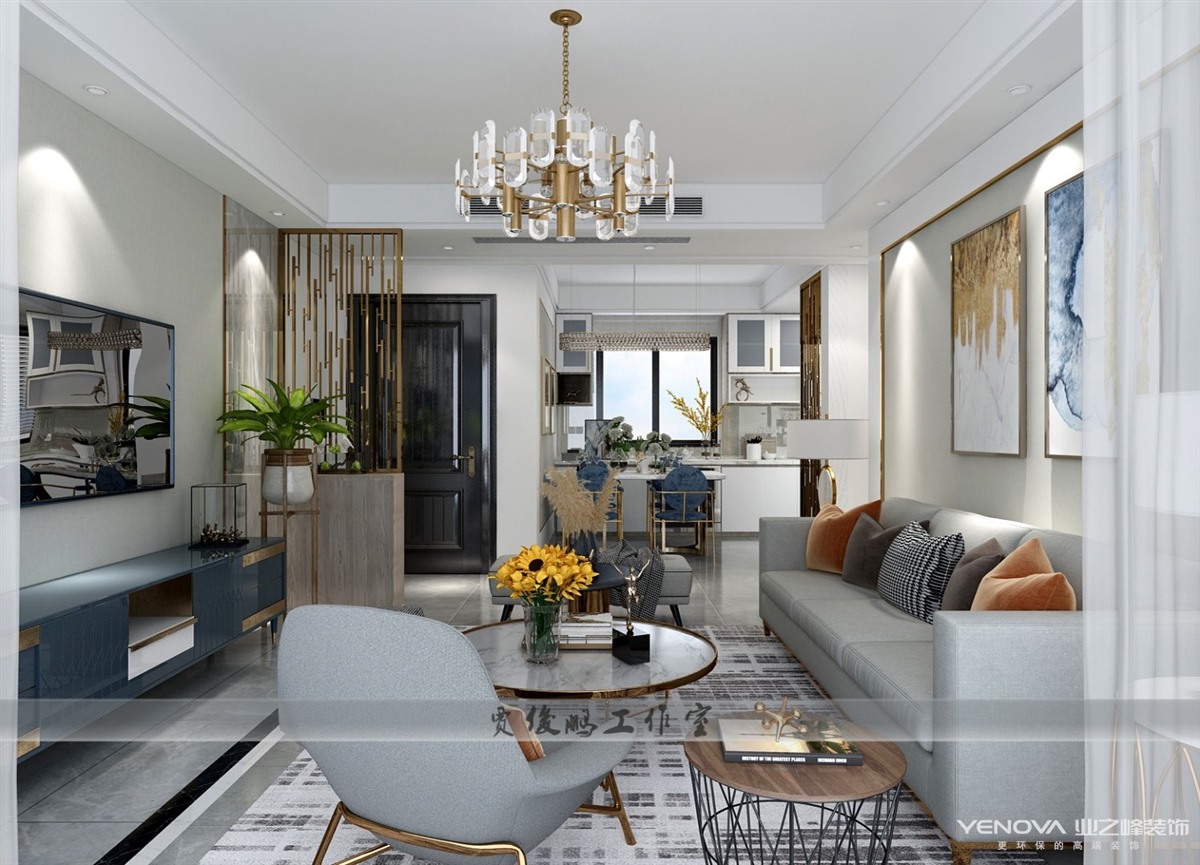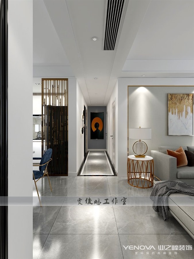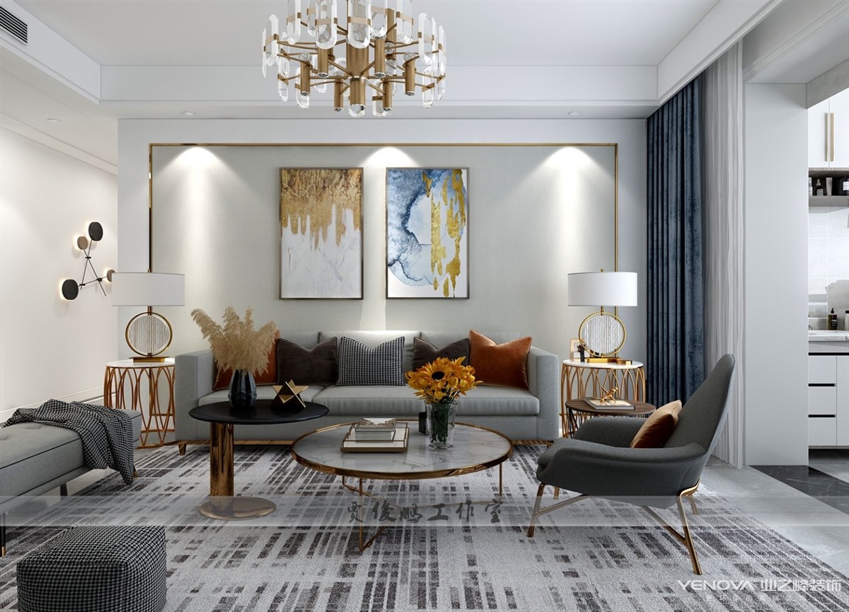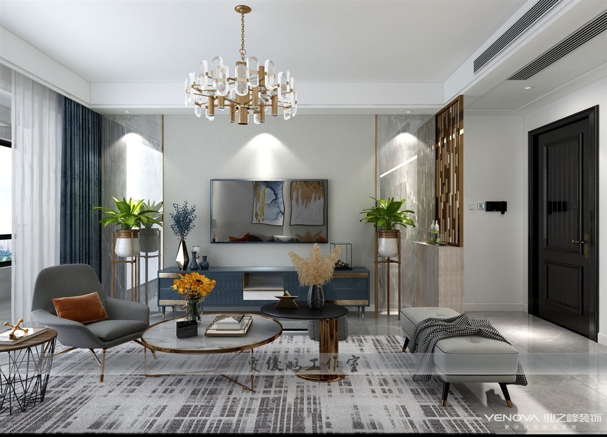 本案定位为现代轻奢风,以现代时尚为设计线索,通过现代元素与时尚的有机融合,展现含蓄沉稳之感。利落的线条与简洁的配色用以打造具有品质感的都市生活的重要元素,通过对空间的解构与塑造,一种专属的生活方式逐渐成型。隔绝喧嚣,沉浸在居家生活带来的自然舒适中。