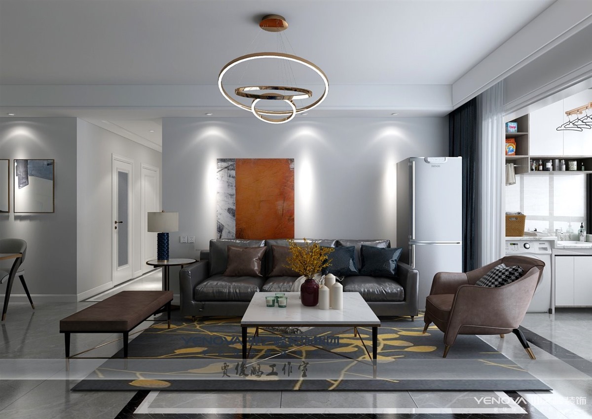 小区:融创文旅城 面积:110㎡ 户型:三居 风格:现代简约风格