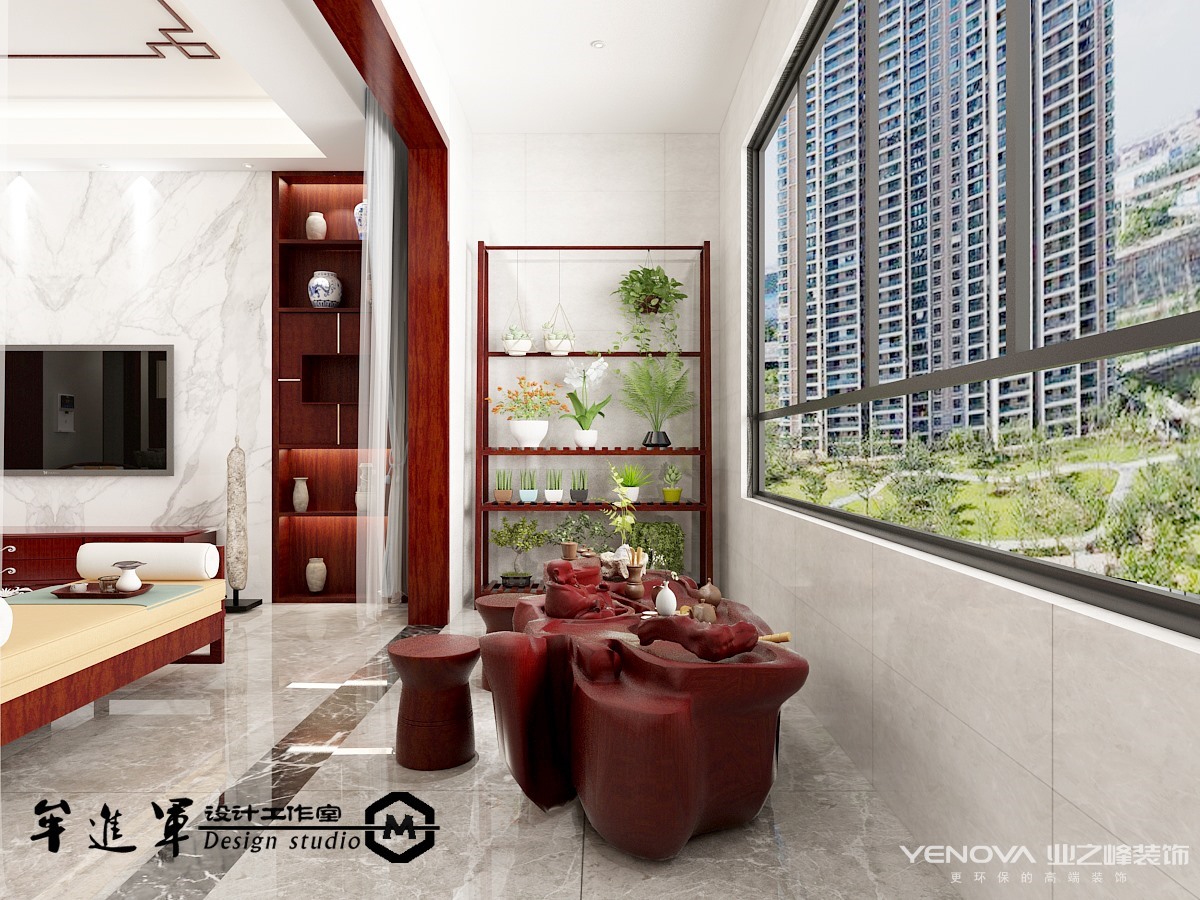 现代人的过度繁忙让人无暇去享受生活,即使玫瑰在你眼前。本案将文人雅士之闲情寄于生活中,以新中式的包容开阔之态接纳万物,选取乌金木材质的家具,隐去传统雕龙画凤,汇合现代手法,融诗语画情于一体,彰显东方的大气之姿。