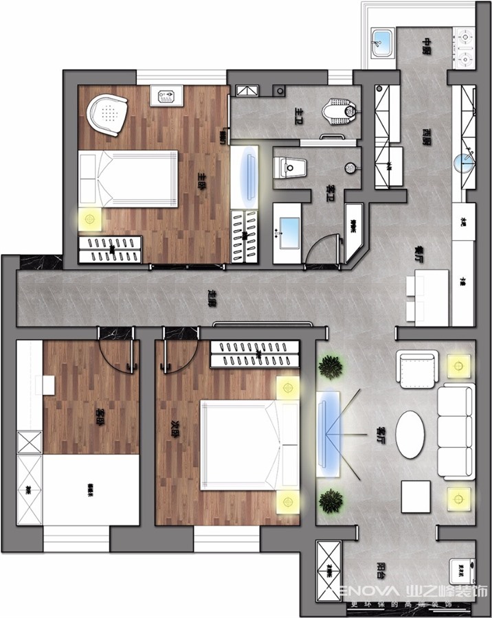 小区:心港假日苑 面积:106㎡ 户型:三居 风格:美式风格
