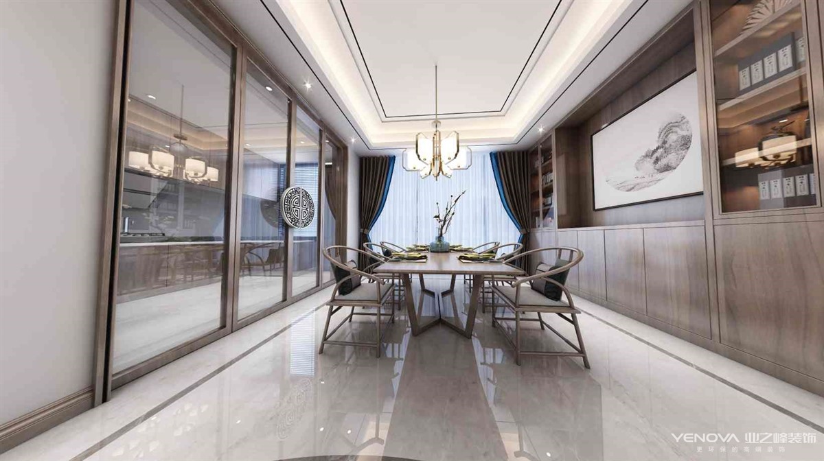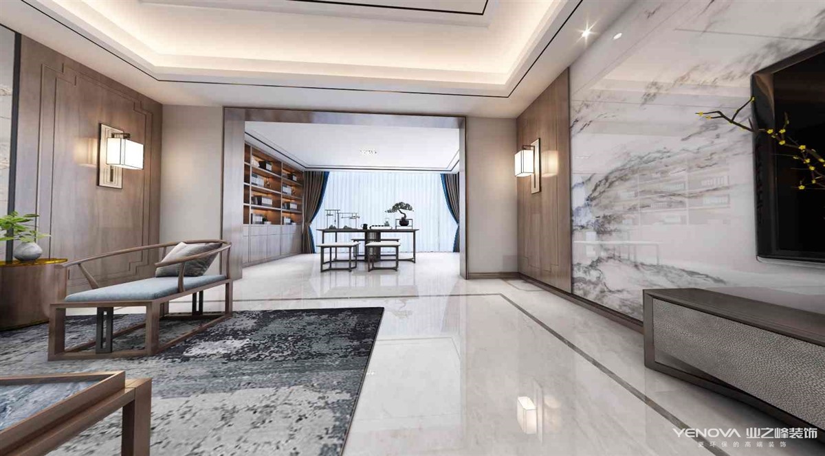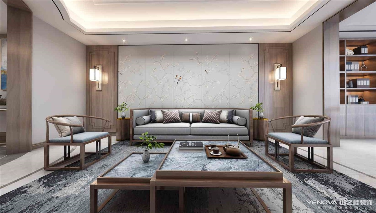 本案定位于现代中式风格,对于现代中式风格的布局上来说,也沿用的传统的中式风格的布局理念。需要保持最大限度的利用好整体空间的采光、通风。步入空间 静观沉思,东方的风韵与艺术的雅致,共同营建出空间清宁澄净,古朴秀雅的气质美学,平朴清贵的木色温润为其增加调性。古雅与今情的默契,无需多言,诗意自现。